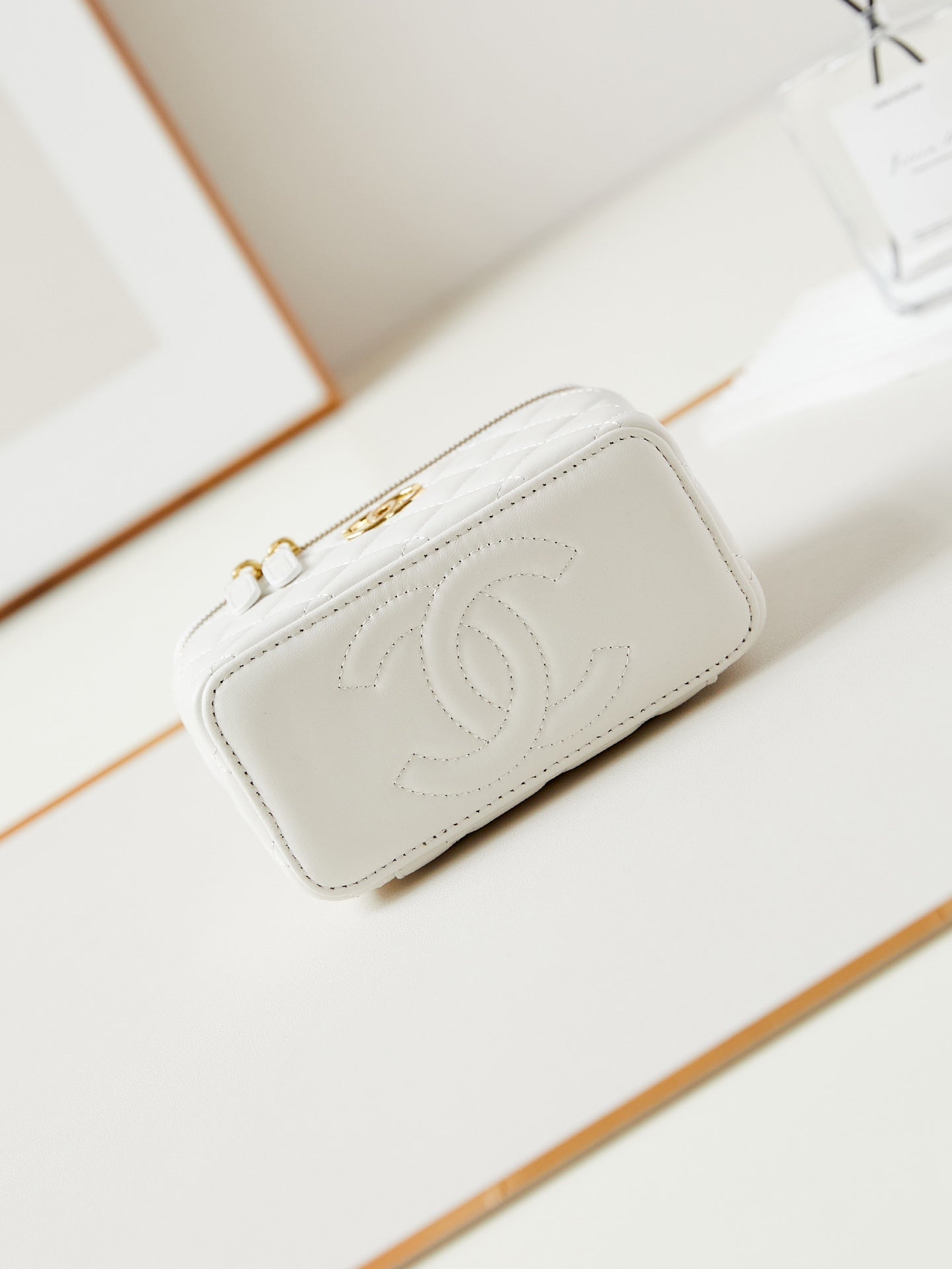 24a vanity 17cm white lambskin gold hardware