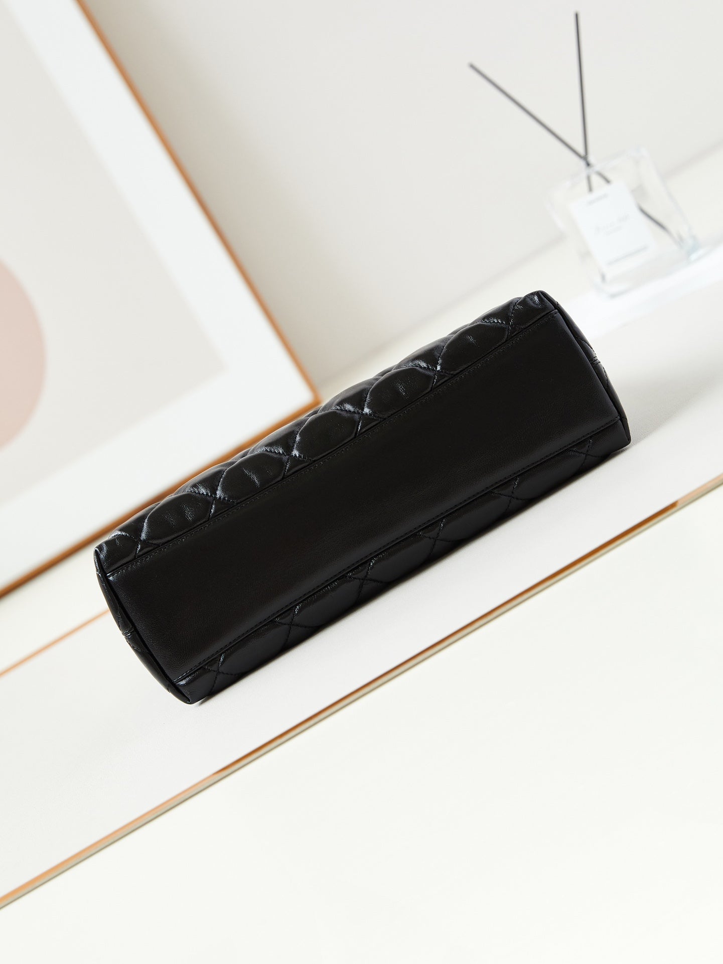24B Small Flap Bag With Top Handle 25cm Black Lambskin