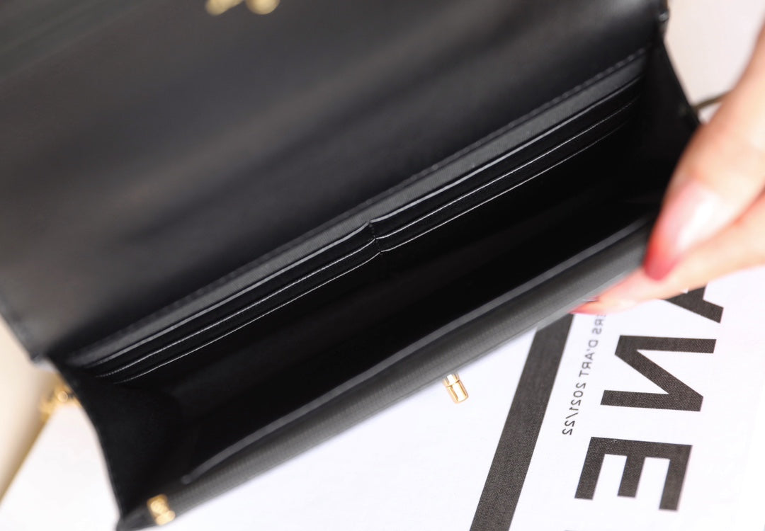 24B Cluth With Chain Black Lambskin Gold Hardware