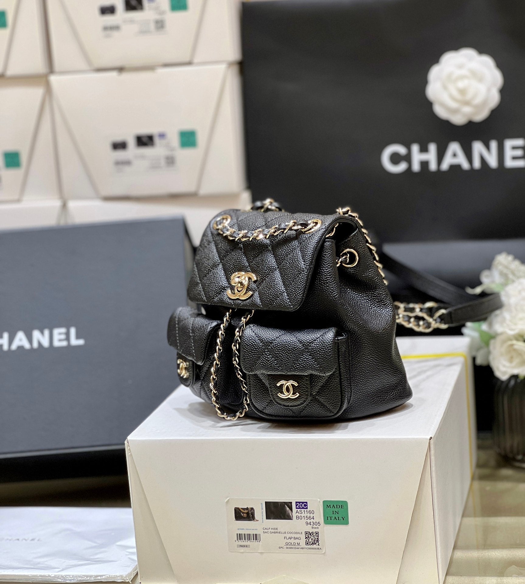 24a mini flap bag 20cm black lambskin pearl and gold hardware