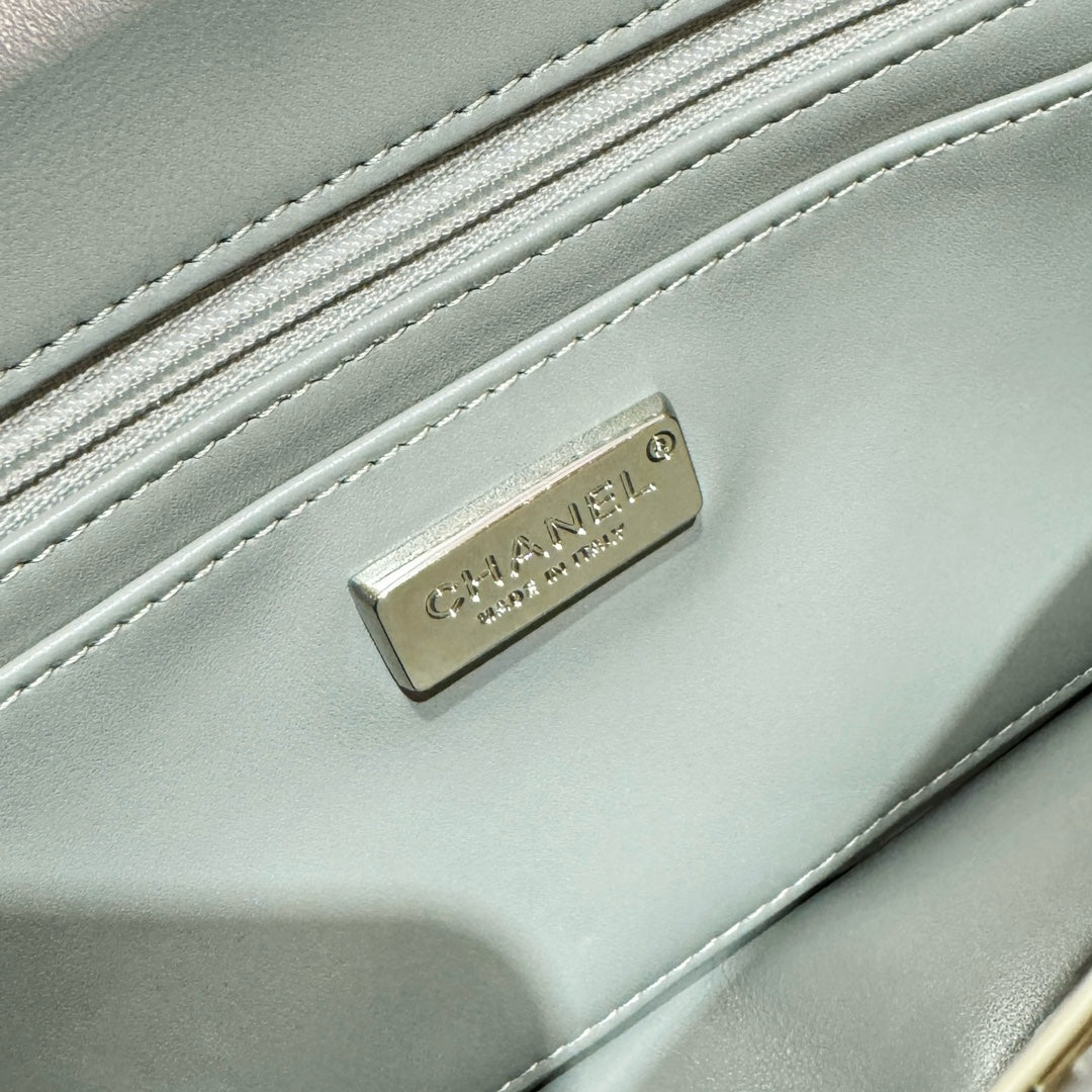 24c mini flap bag 20cm with top handle grey patent calfskin