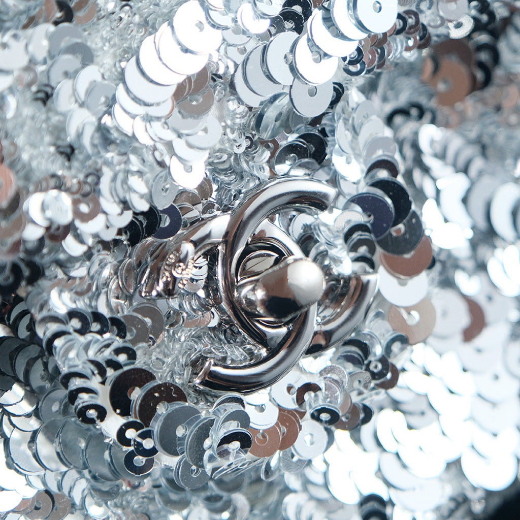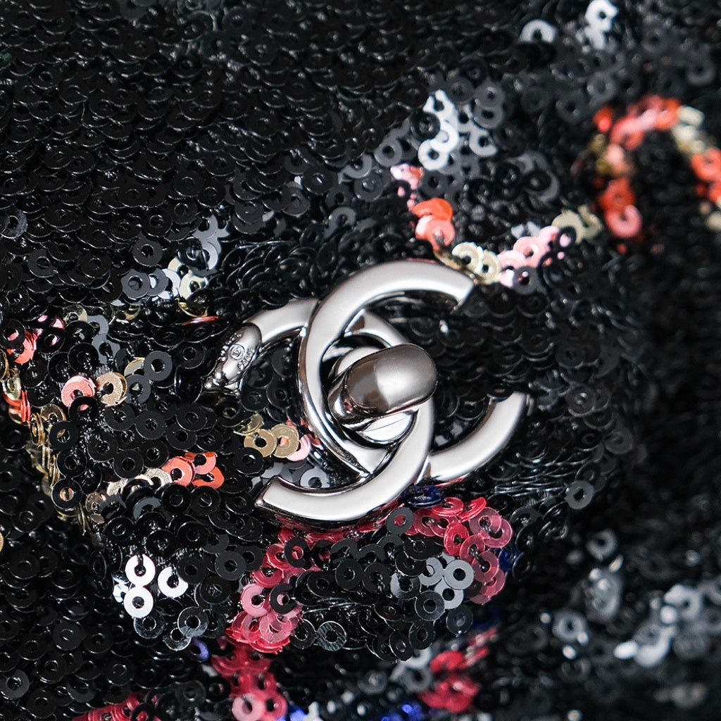 24S Flap Bag 20cm Black White Sequin Calfskin