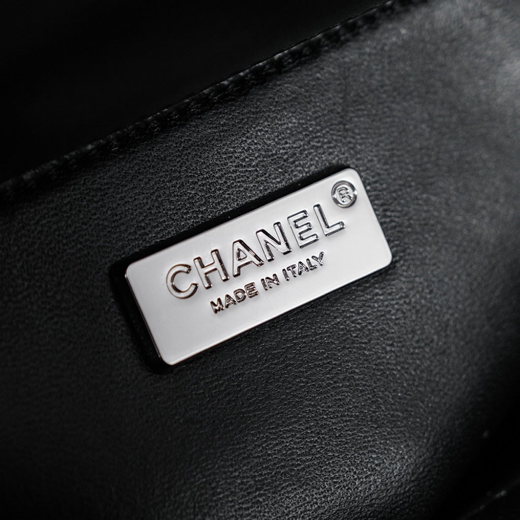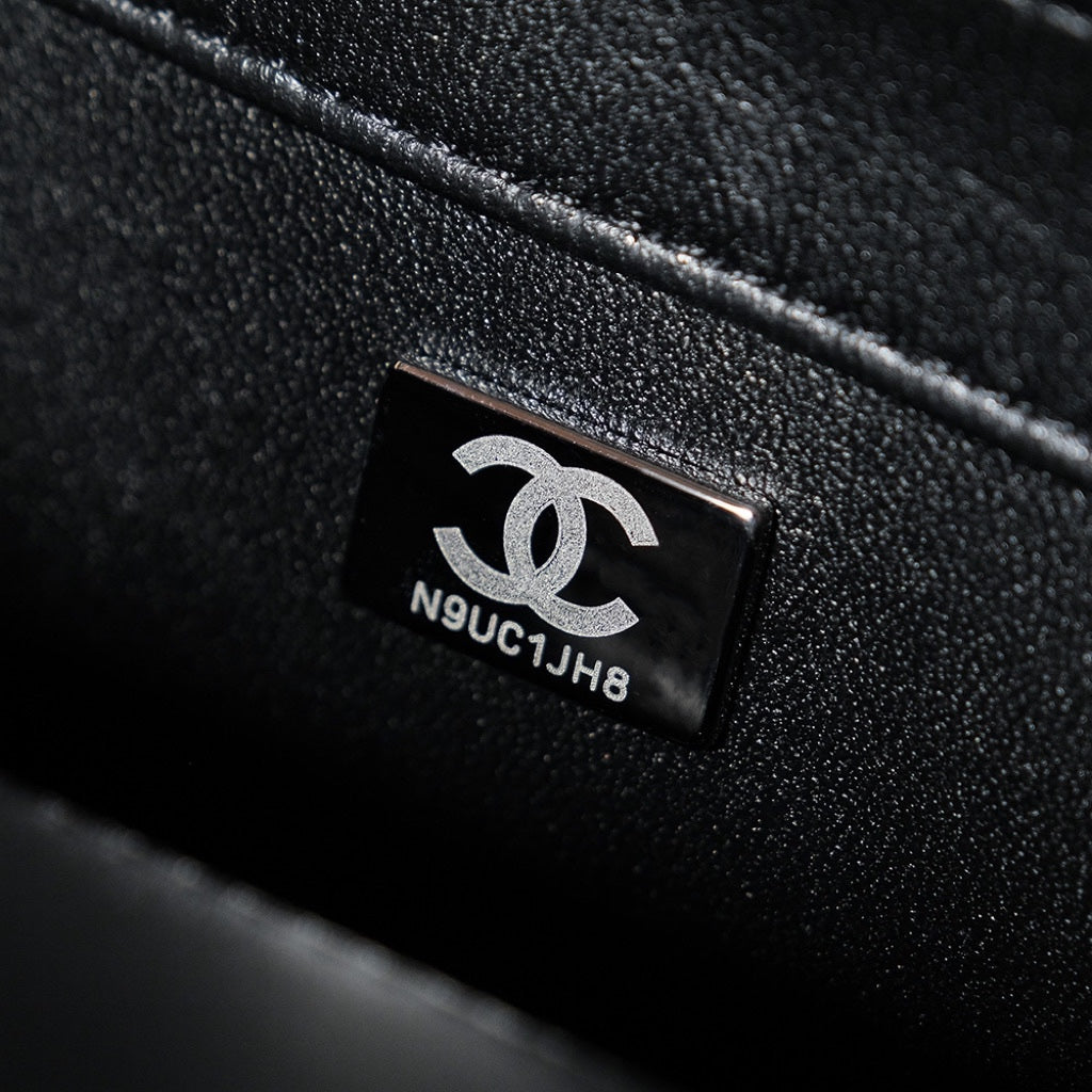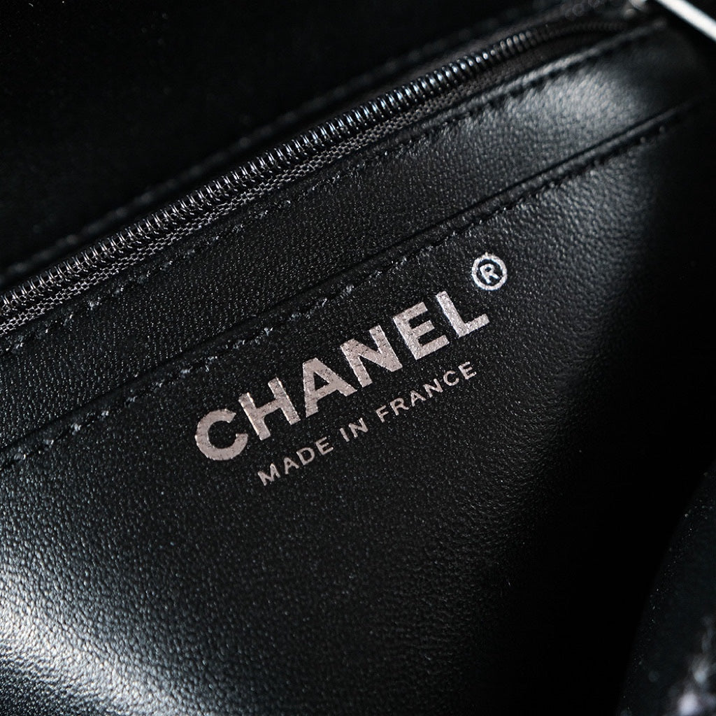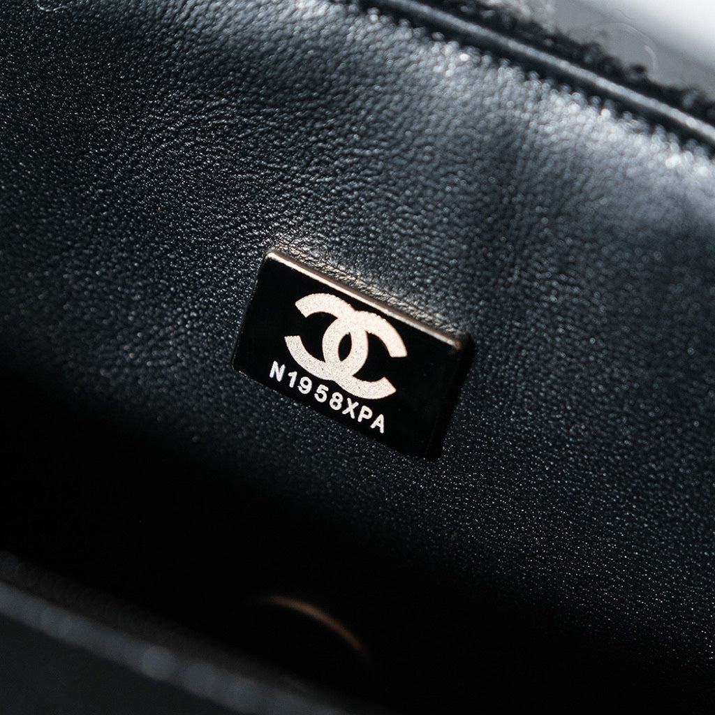 24c mini flap bag 20cm with top handle black calfskin silver hardware