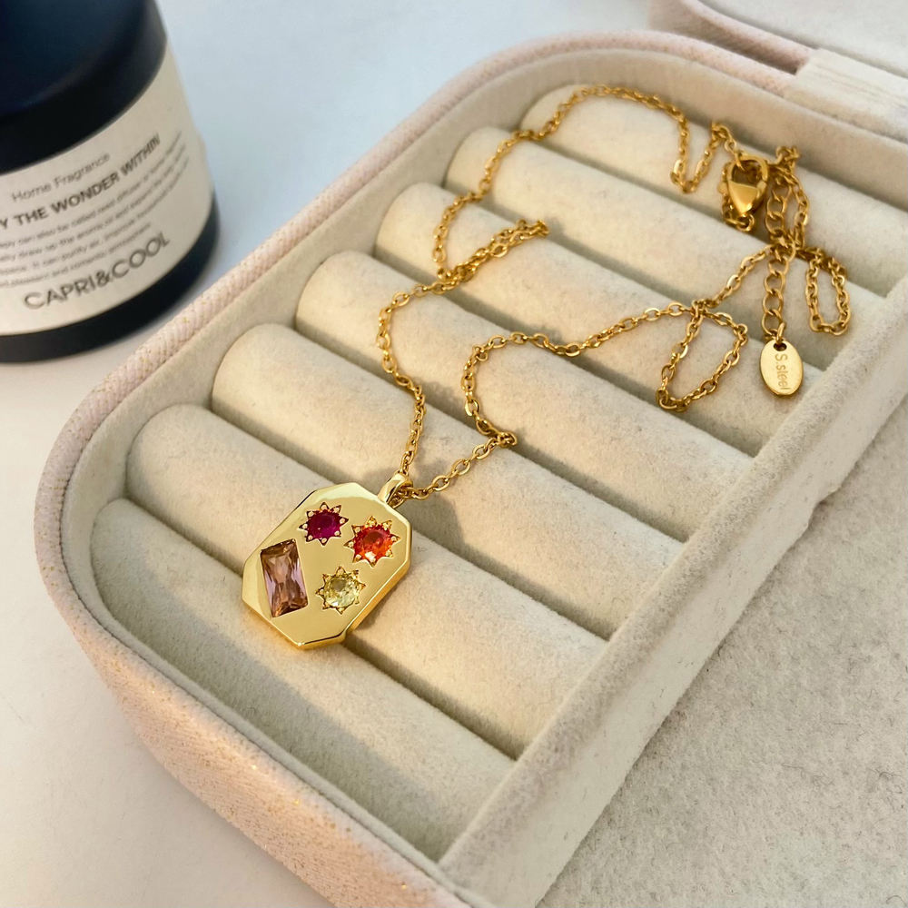 30 MONTAIGNE NECKLACE GOLD-FINISH METAL WHITE CRYSTALS #RSA3050