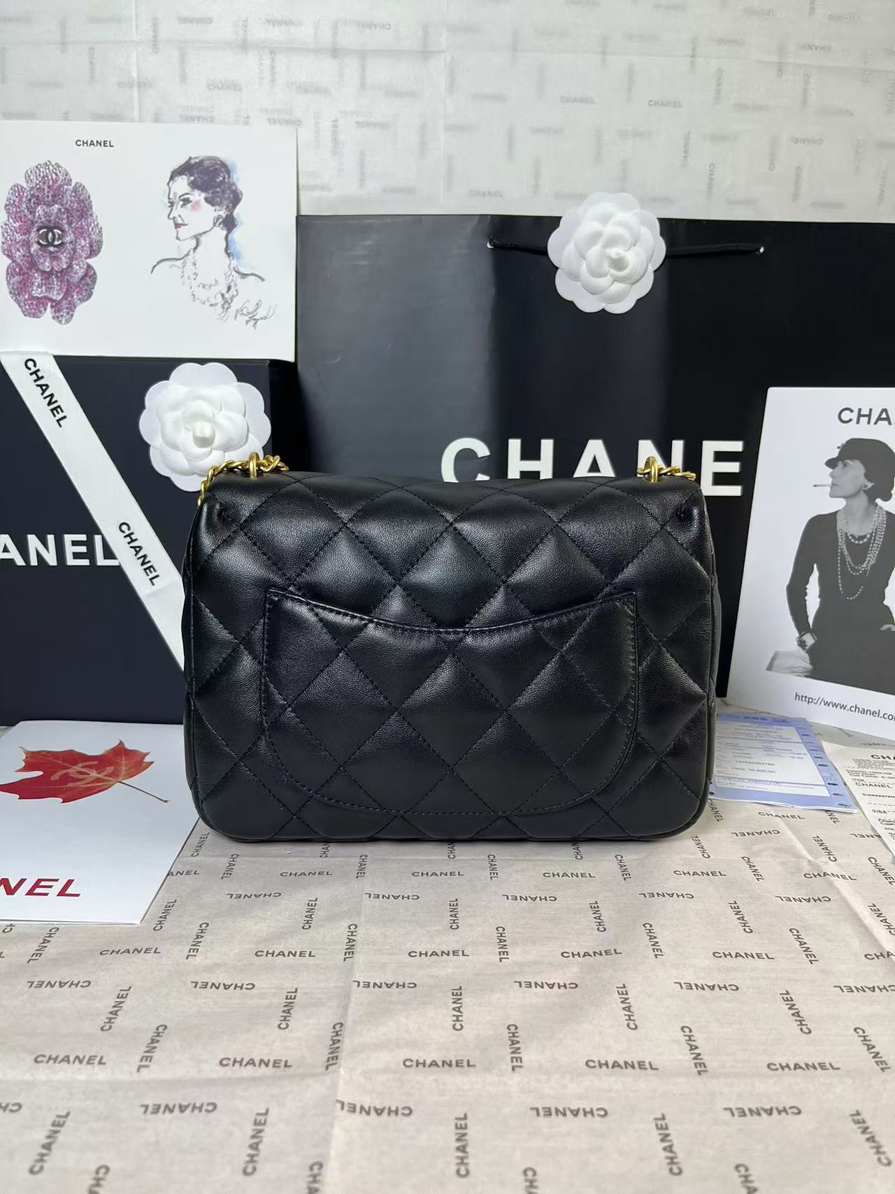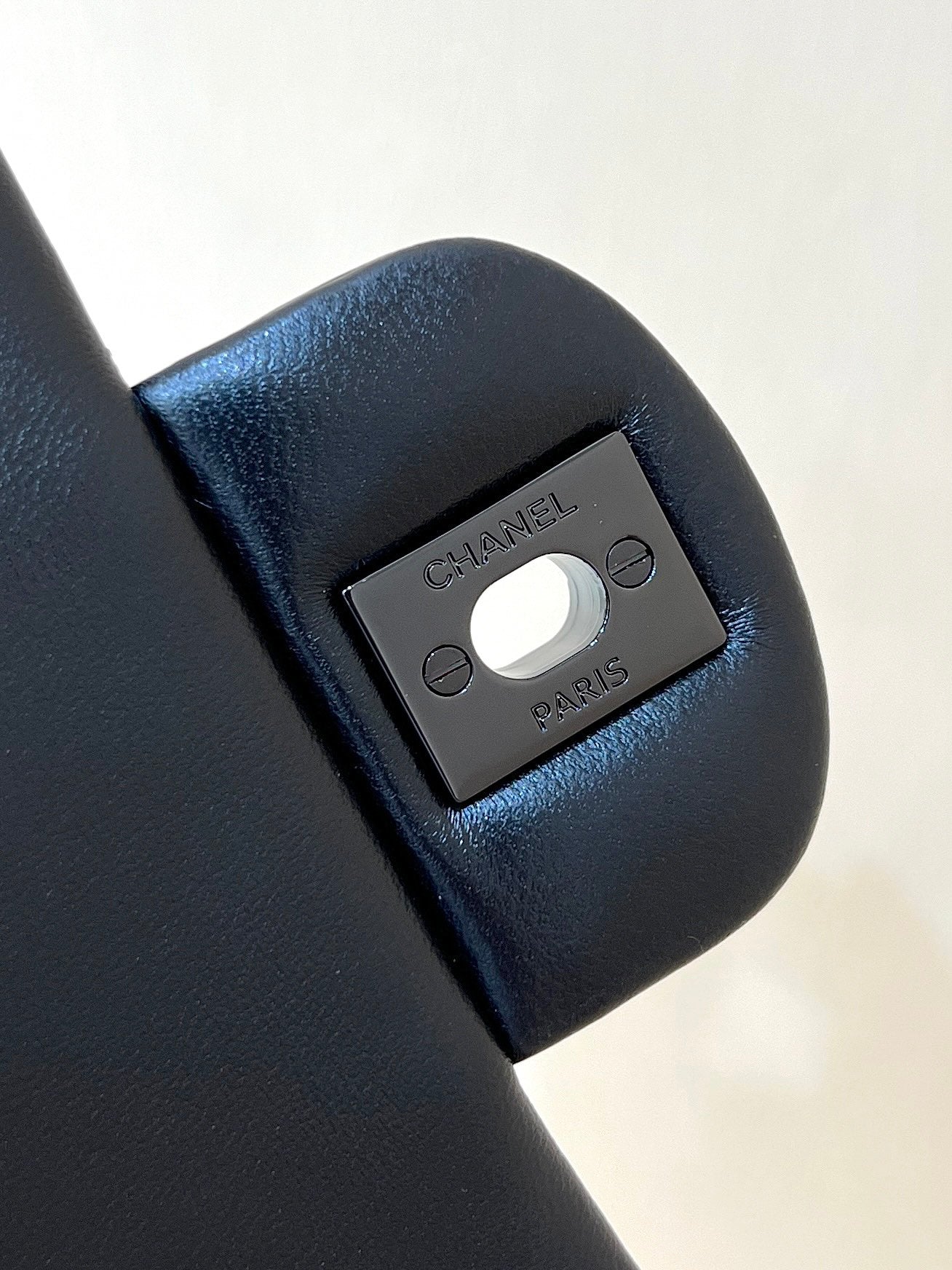25C Mini Flap Bag Top Handle 20cm Black Lambskin Black Hardware Premium Version