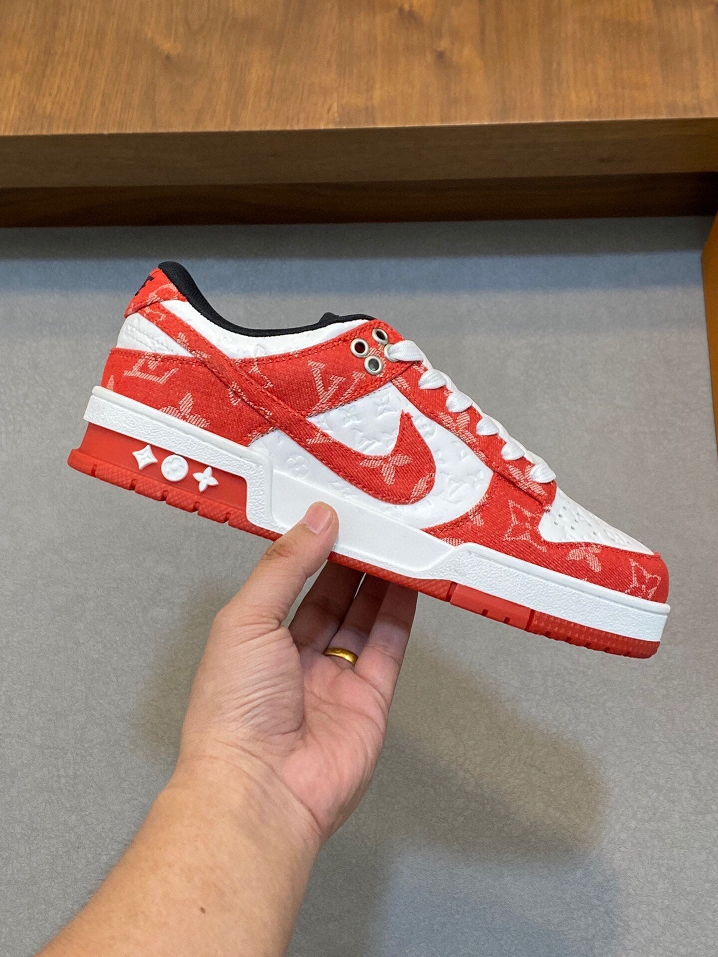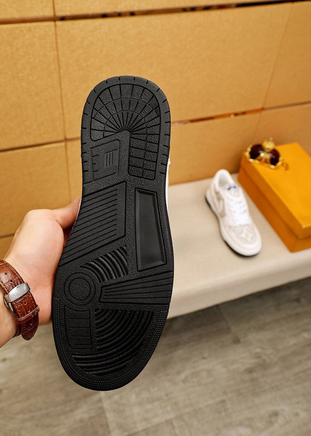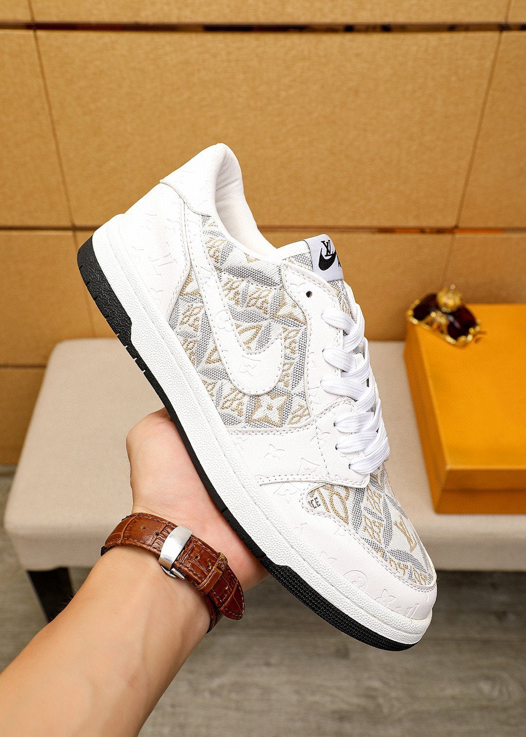 AIR TRAINER IN BROWN DAMIER CALFSKIN