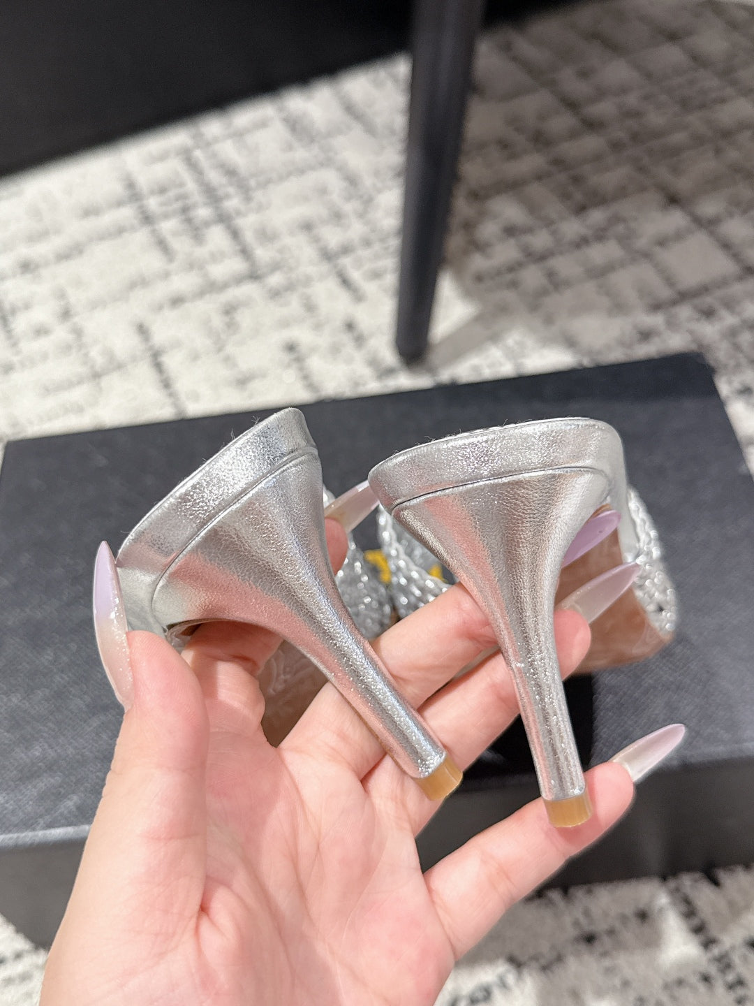ALAIA Muller high-heeled metallic sliver woven leather