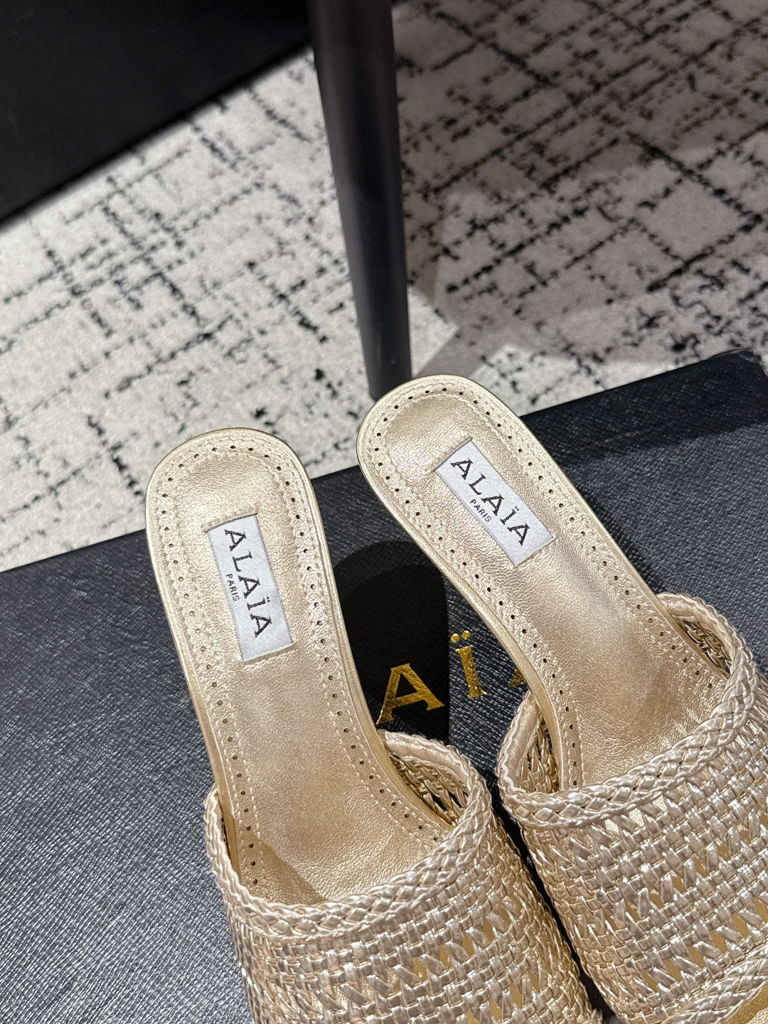 ALAIA Muller high-heeled metallic gold woven leather