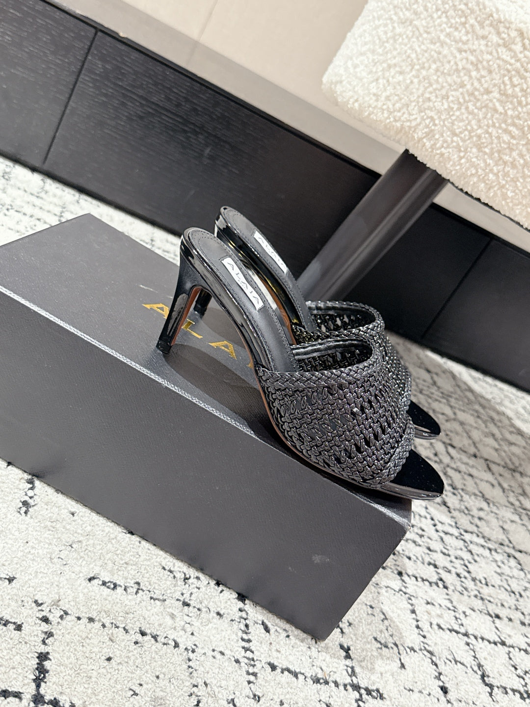 ALAIA Muller high-heeled black woven leather