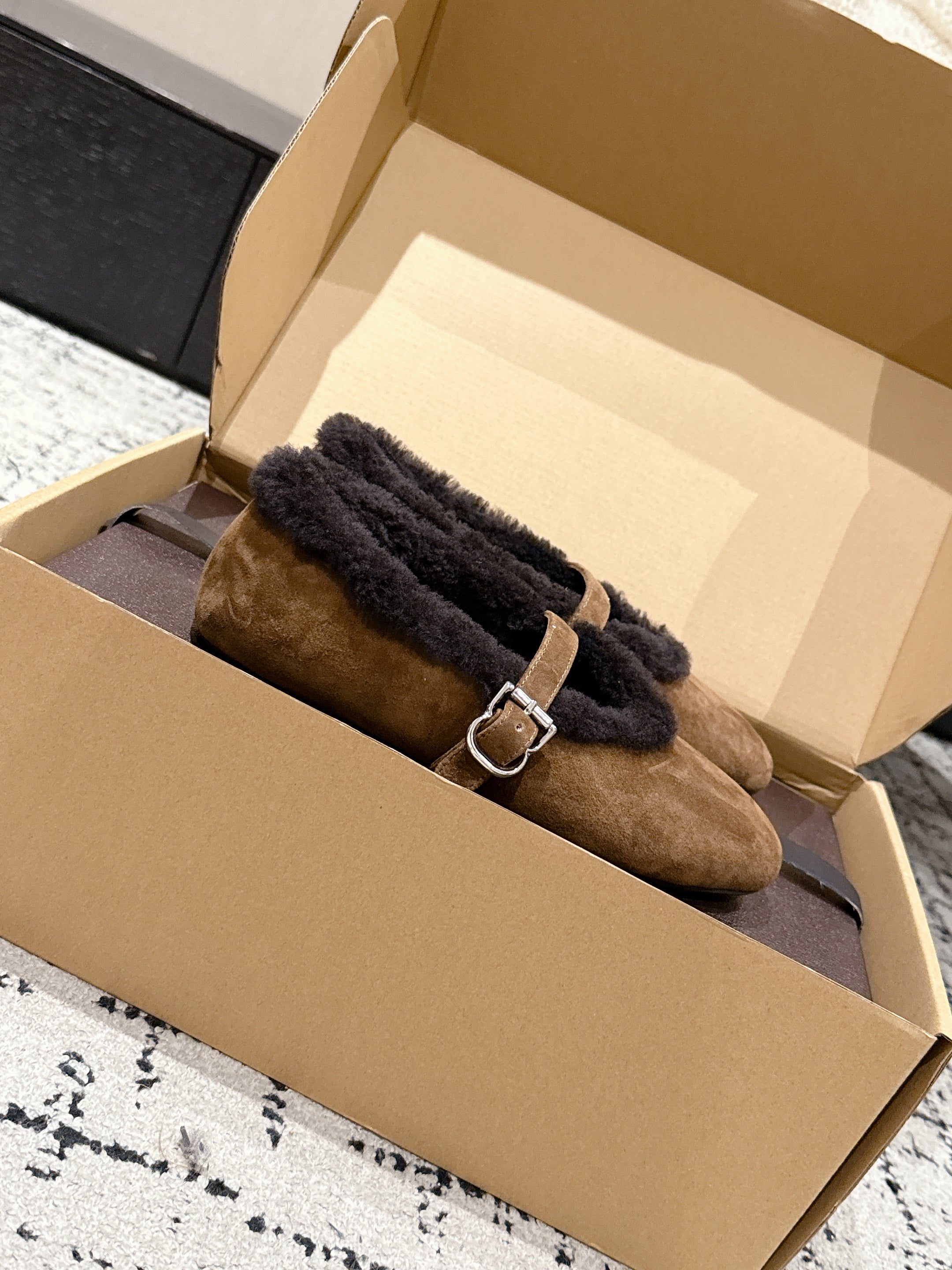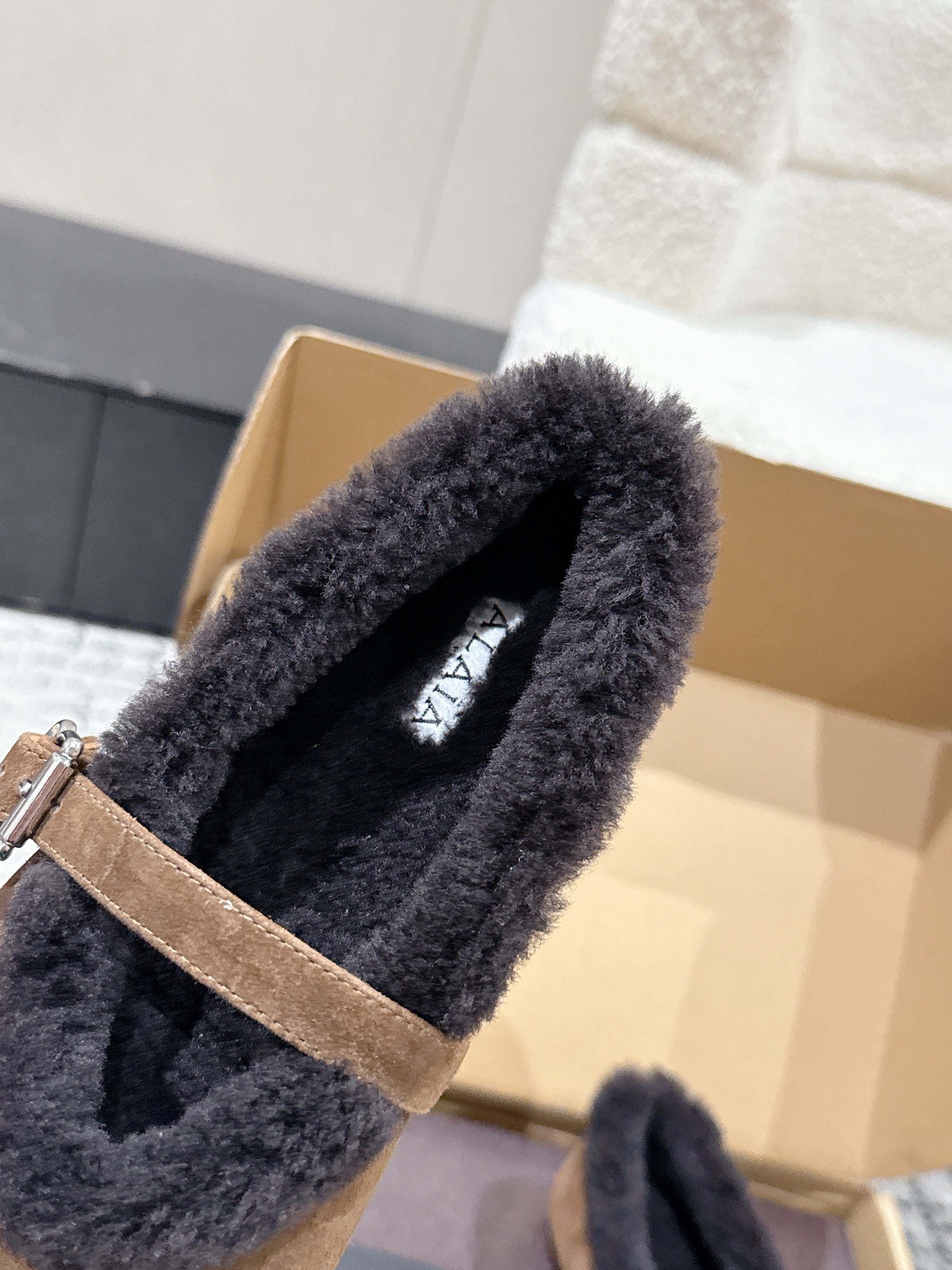 Alaia 2025 Ballet Flat Brown Black Suede Wool 558672