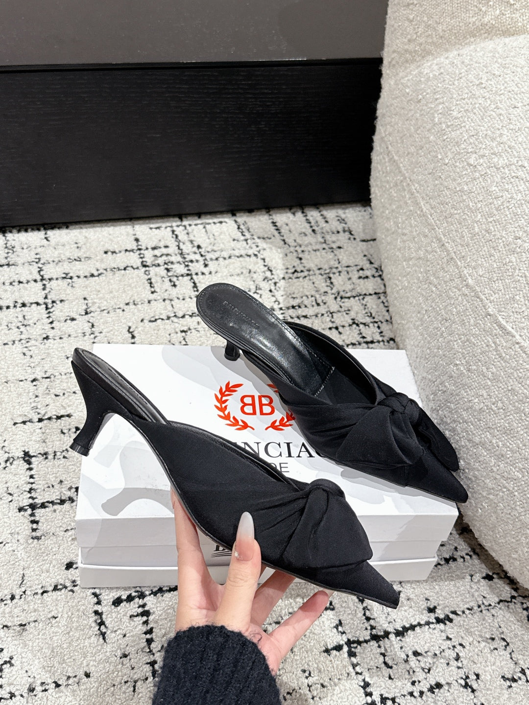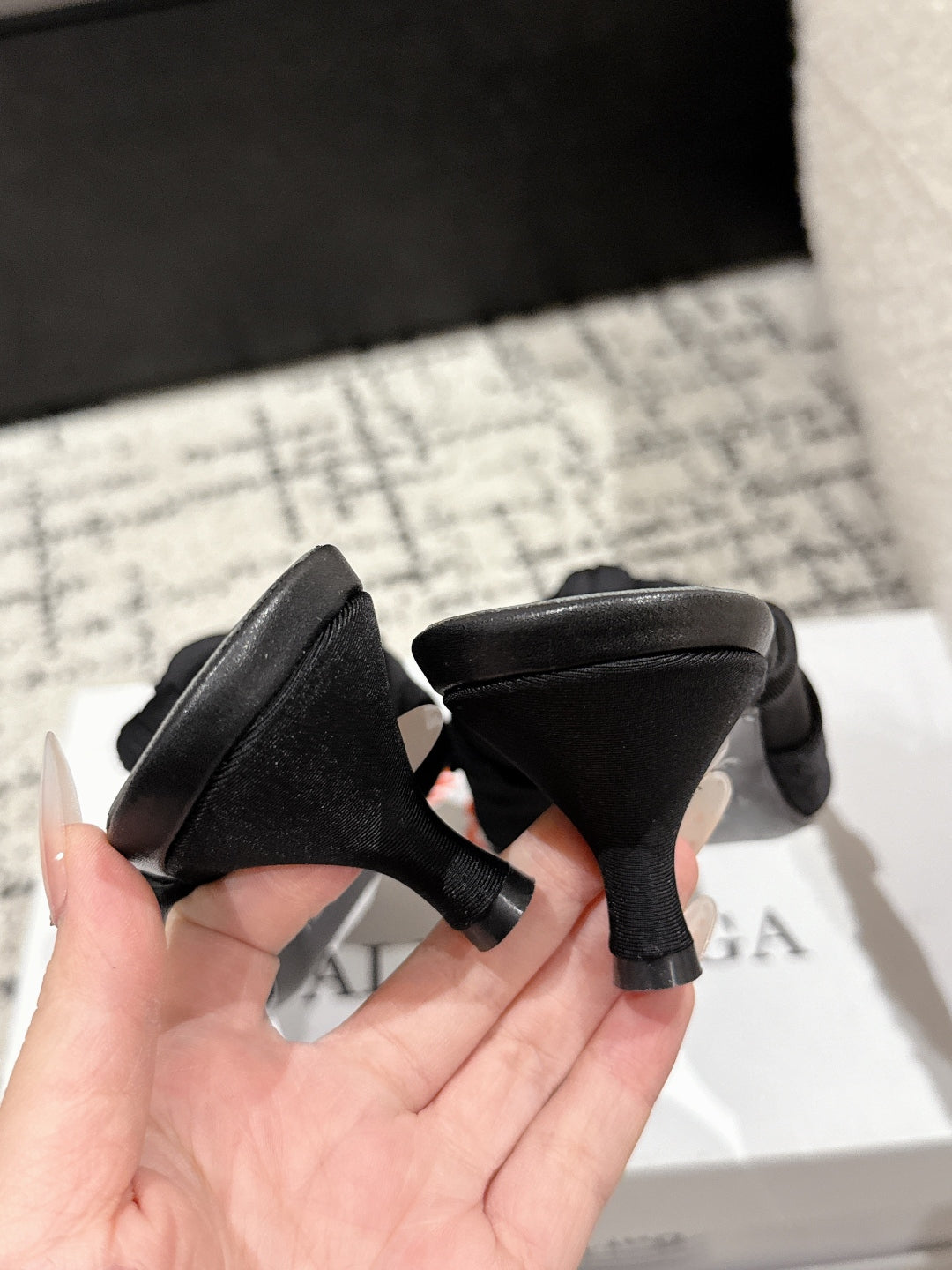 KNIFE CHEMISE 45MM SLINGBACK IN BLACK COTTON AND CALFSKIN