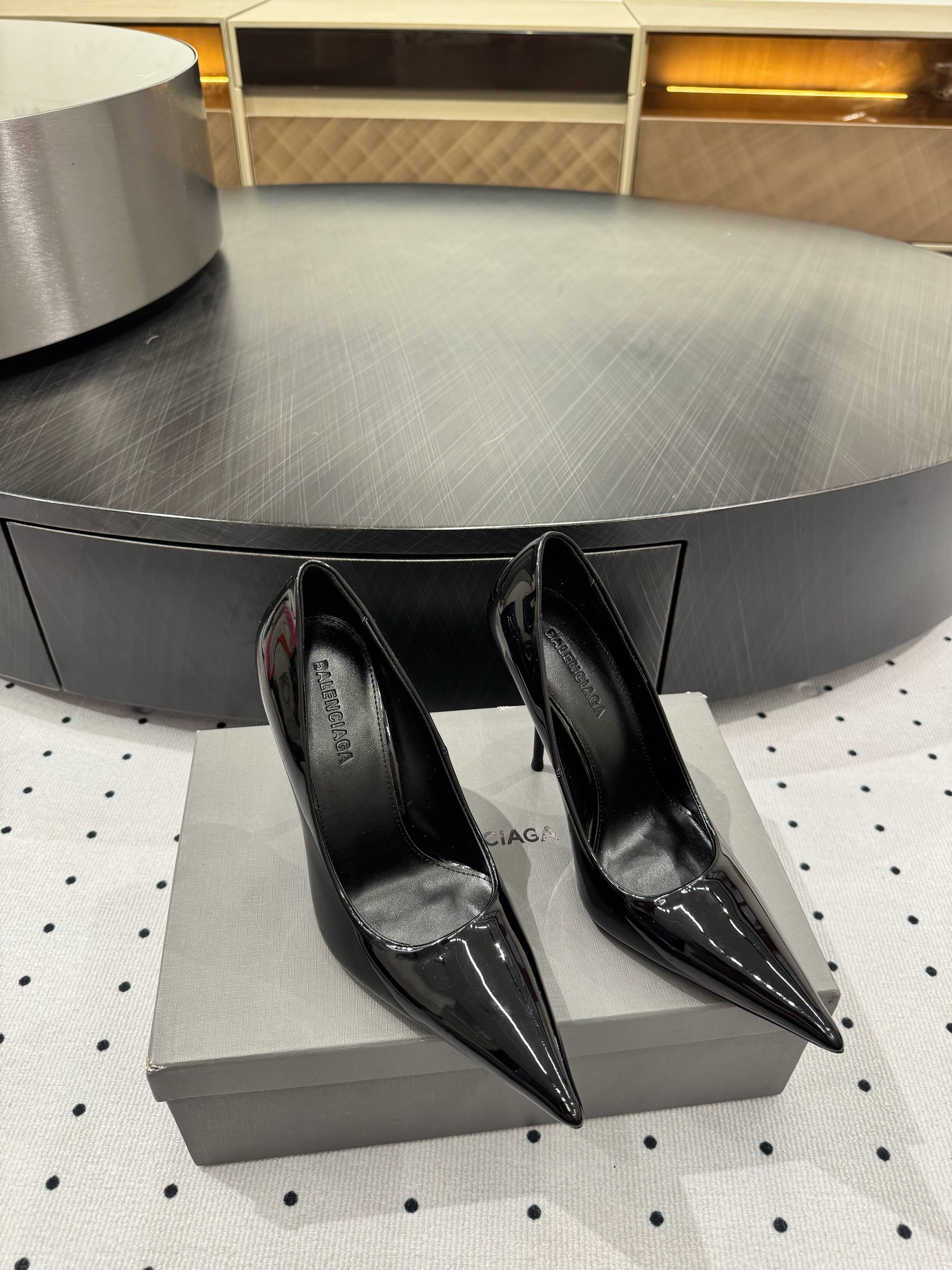 POINTED BB GOLD BUCKLE HIGH PUMPS 80MM IN BLACK PATENT CALFSKIN