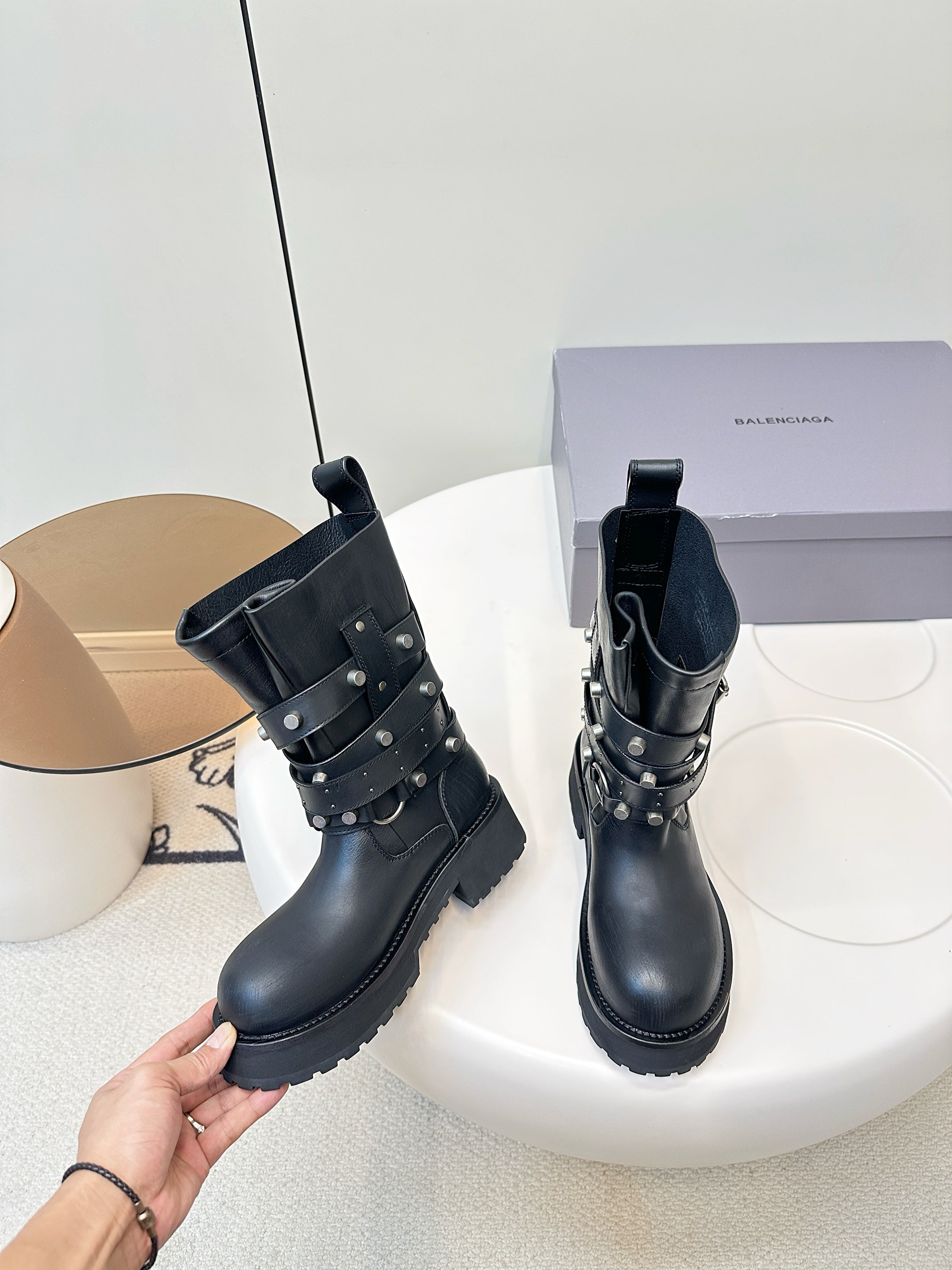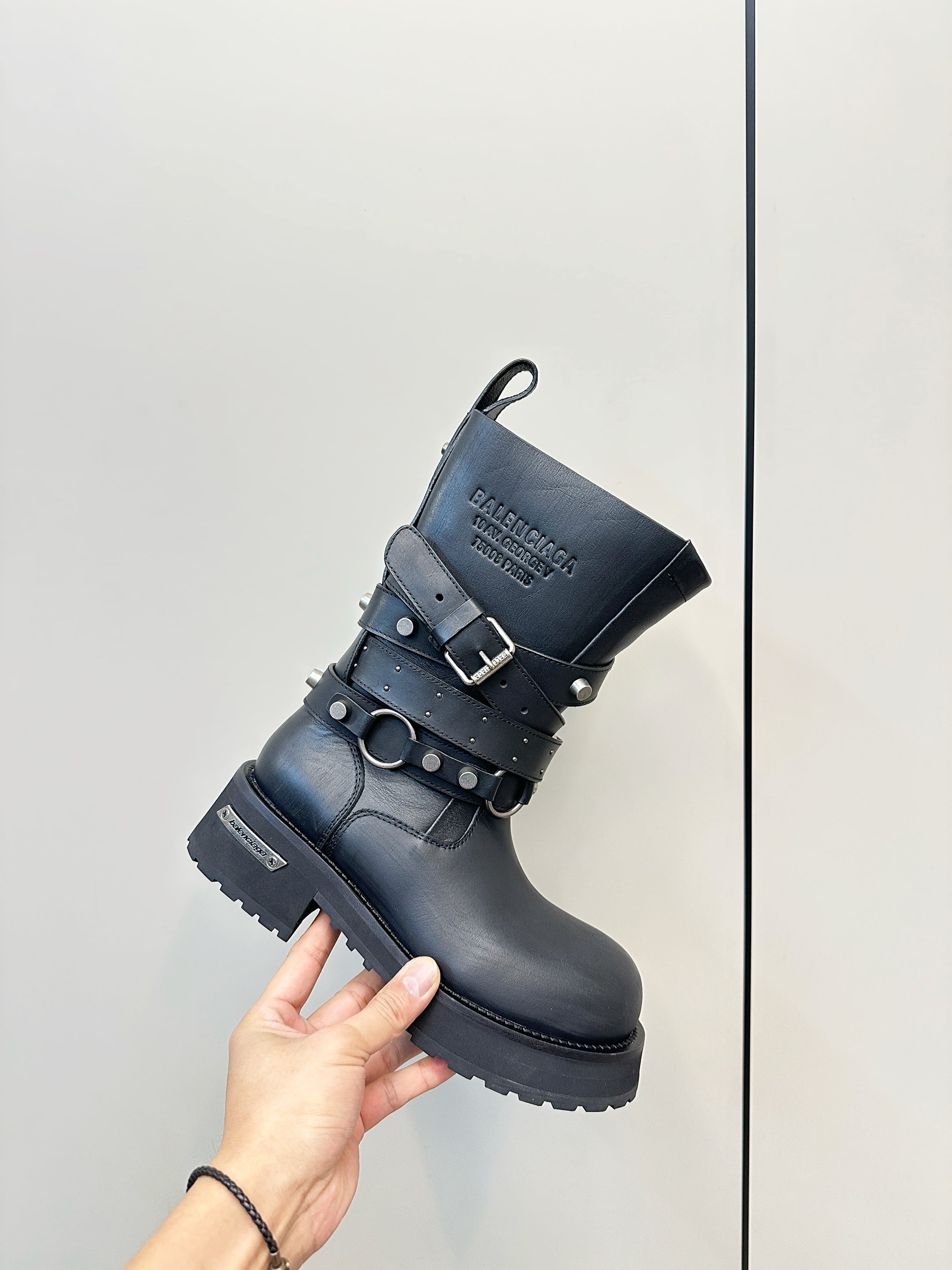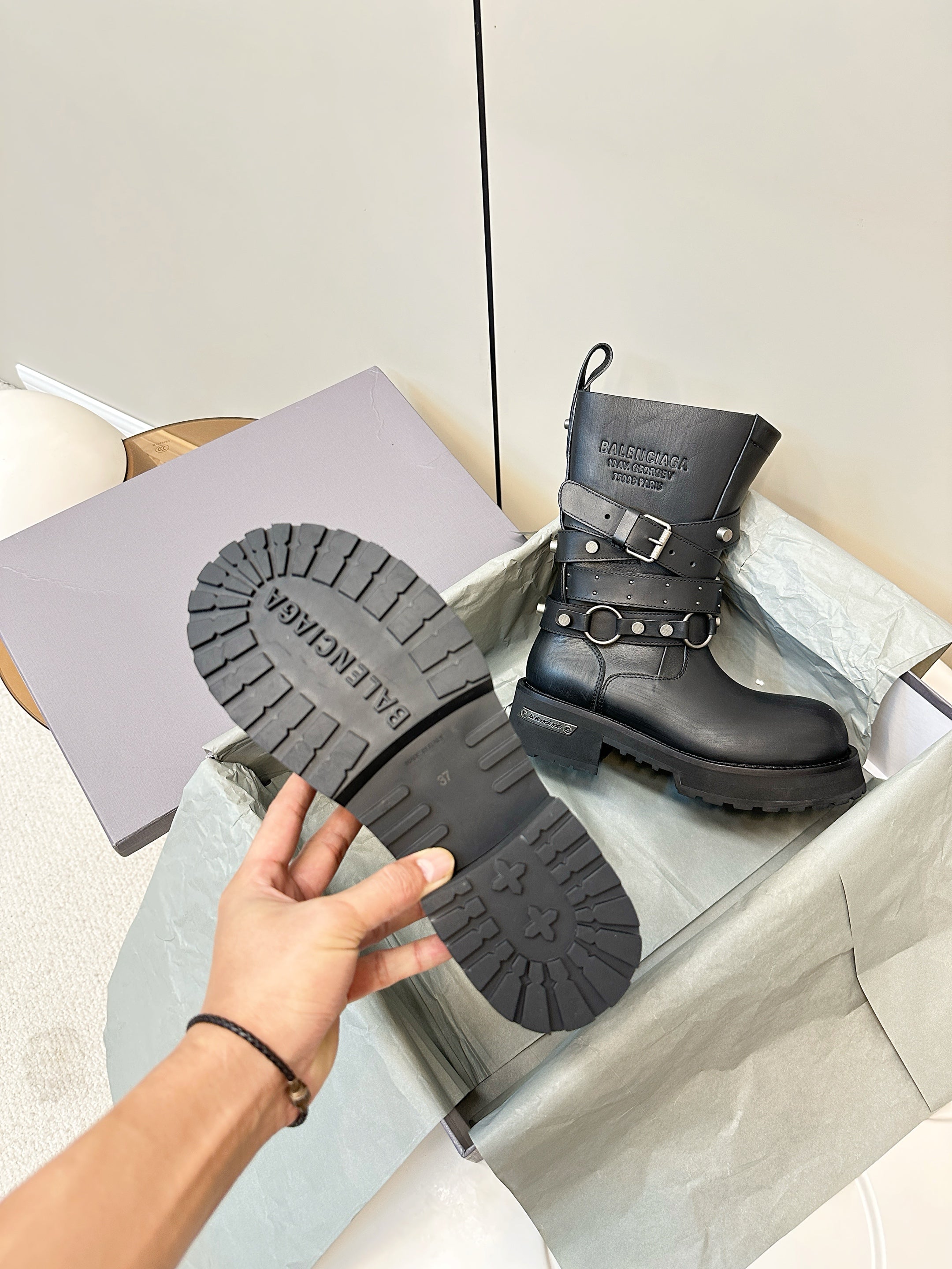 Balenciaga 25ss Martin boots double B buckle black calfskin