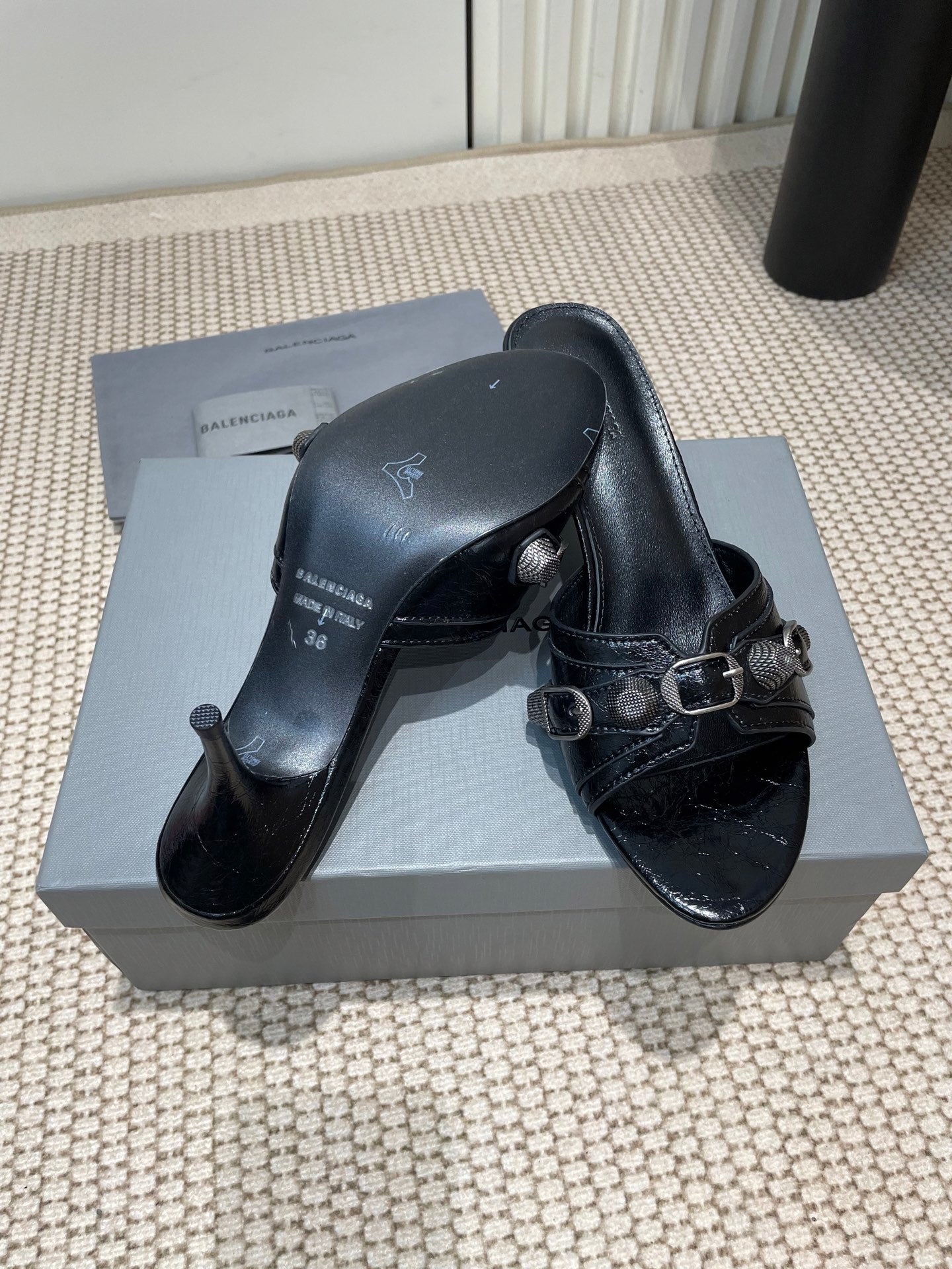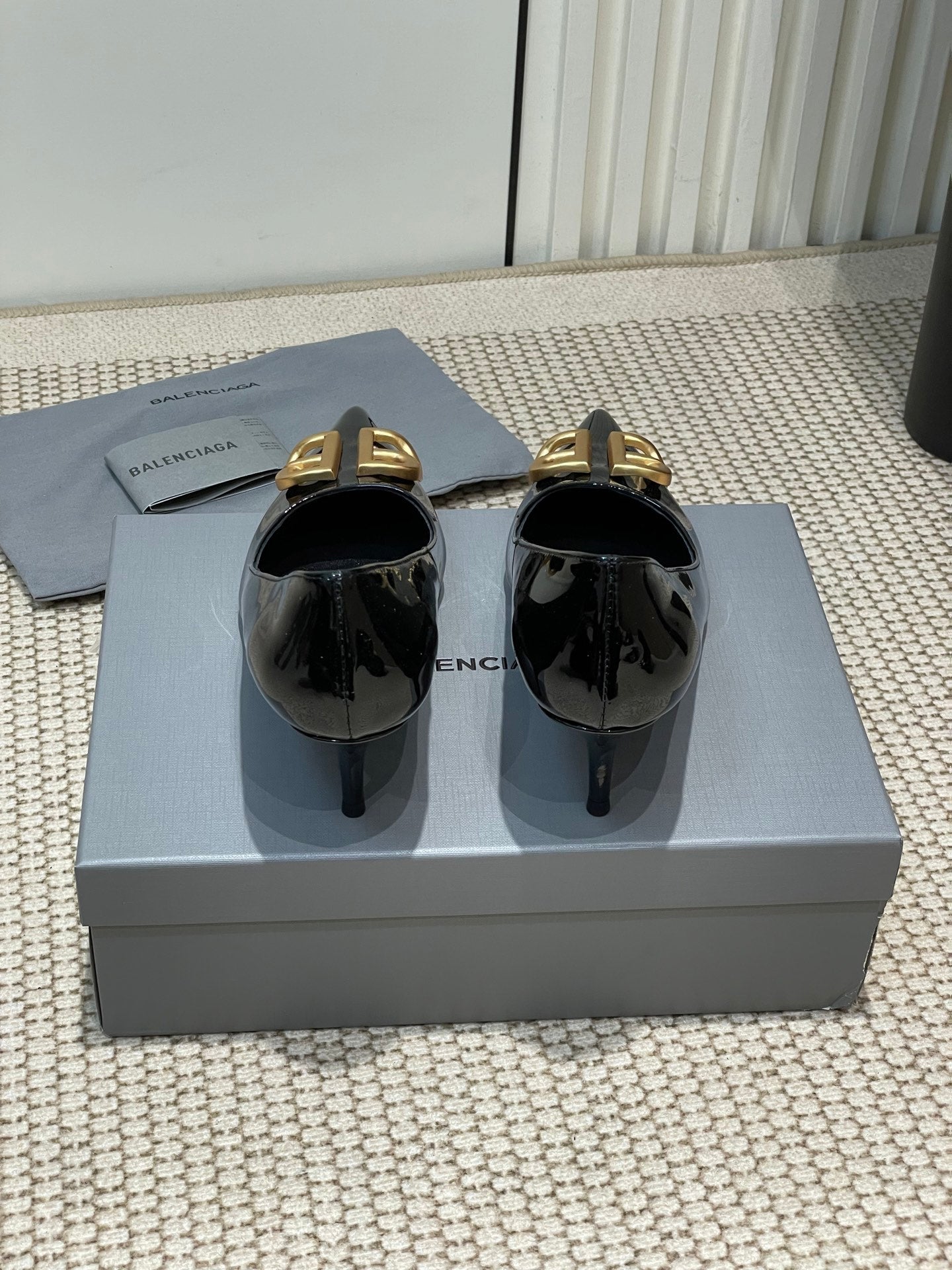 POINTED BB GOLD BUCKLE HIGH SLINGBACK 60MM IN BLACK PATENT CALFSKIN