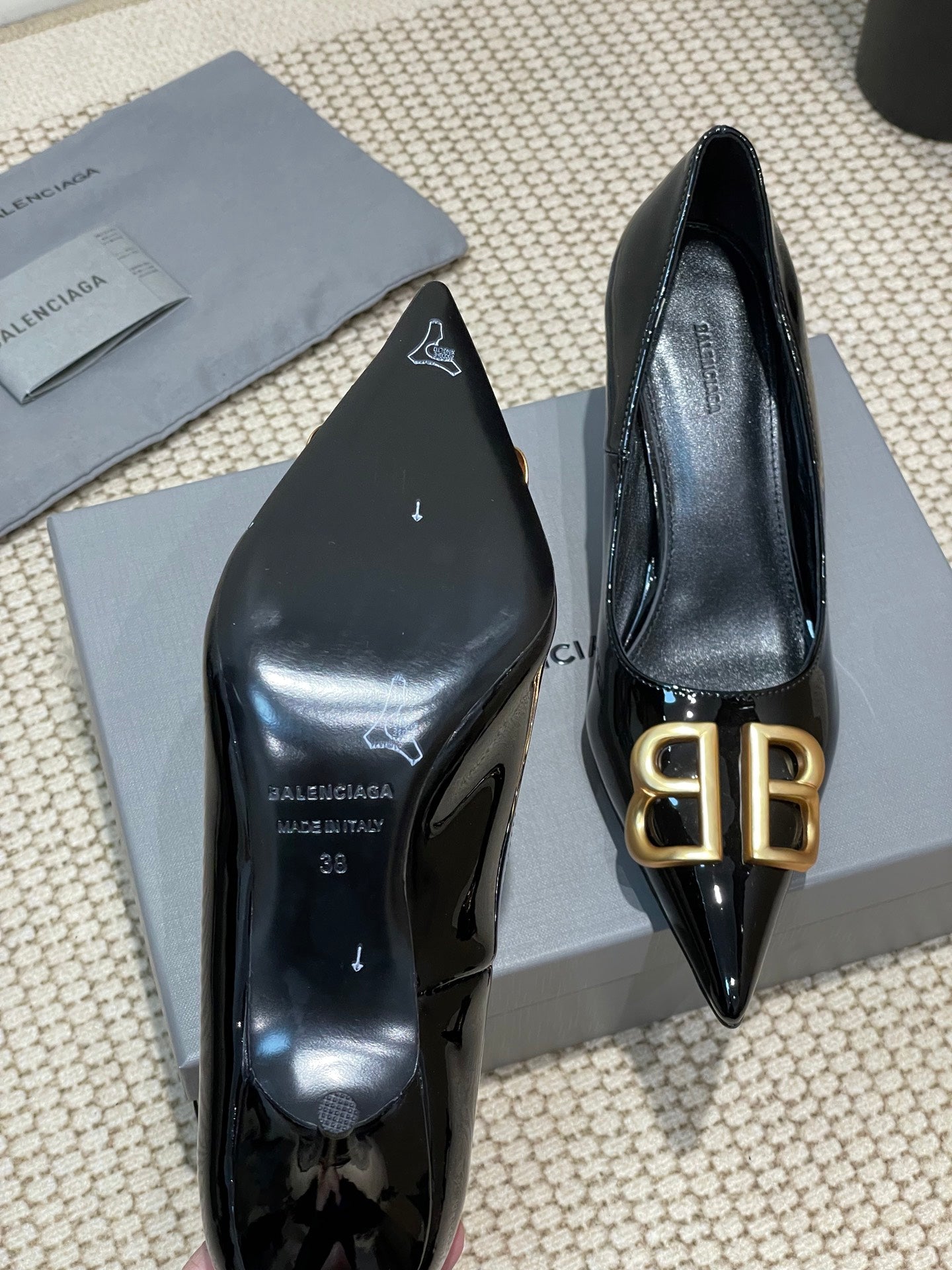 POINTED BB GOLD BUCKLE HIGH PUMPS 60MM IN BLACK PATENT CALFSKIN