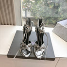 CAGOLE HIGH-HEEL SANDALS IN SILVER METALLIC LAMBSKIN