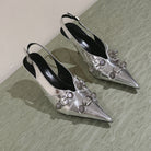 CAGOLE HIGH SLINGBACK IN SILVER GLOSSY CALFSKIN