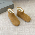 FLAT ANKLE BOOTS IN CIDER BROWN SUEDE AND SHEARLING LINING