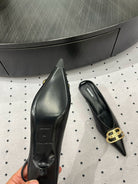 HEELED SLINGBACK 45 MM IN BLACK SMOOTH LAMBSKIN GOLD HARDWARE