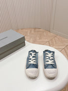 PARIS MULES IN BLUE DESTROYED DENIM AND RUBBER