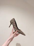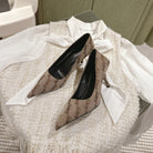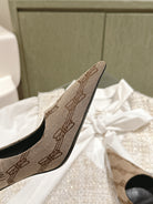 POINTED HIGH PUMPS IN BEIGE MONOGRAM JACQUARD FABRIC