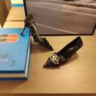 POINTED TOE PUMPS BLACK WITH LOGO PRINT SMOOTH CALFSKIN