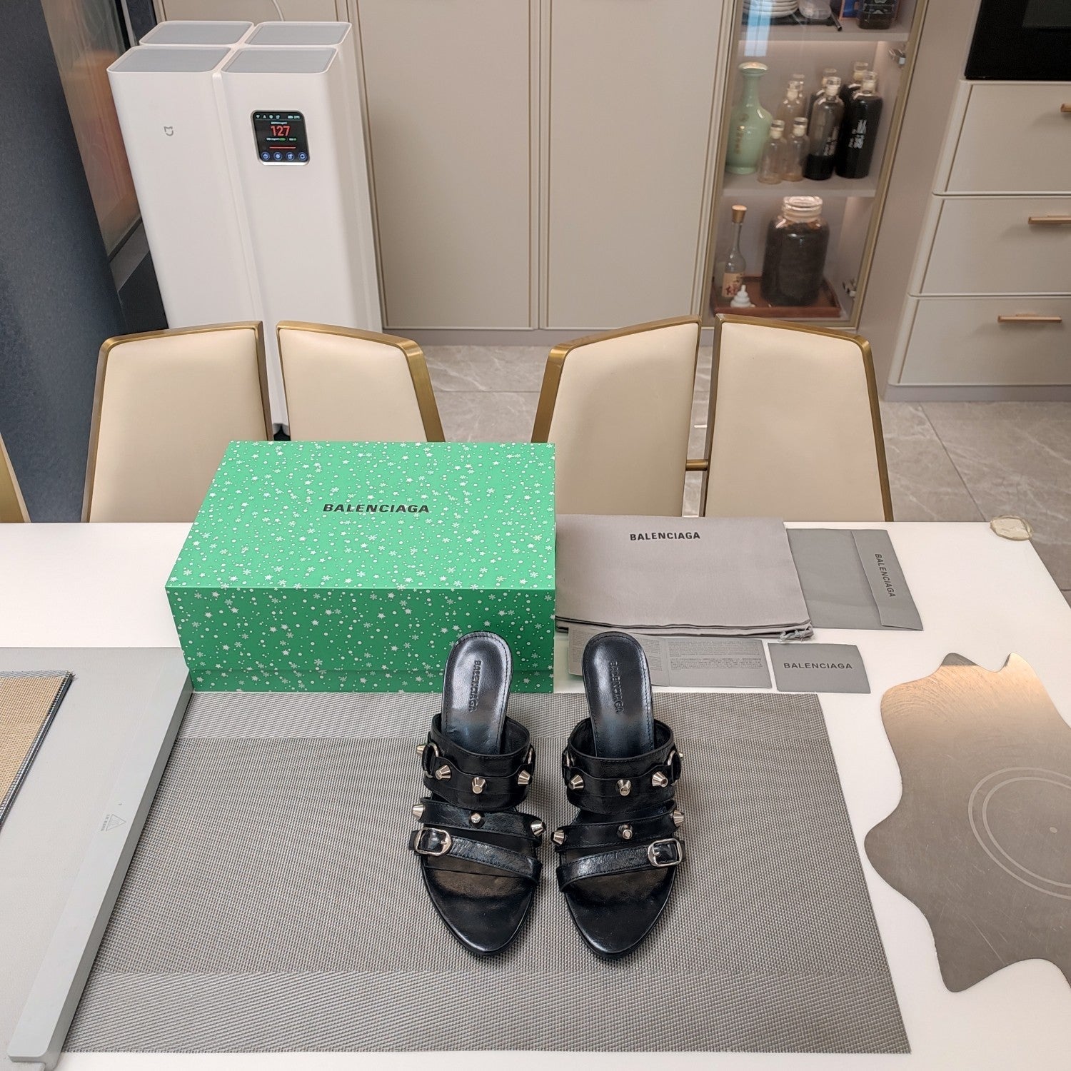 STRAPPY HIGH-HEELED SANDALS IN BLACK STUDDED WAX-OIL SHEEPSKIN