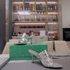 STRAPPY HIGH-HEELED SANDALS IN SILVER STUDDED WAX-OIL SHEEPSKIN