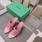 STRAPPY HIGH-HEELED SANDALS IN WEWAK PINK STUDDED WAX-OIL SHEEPSKIN