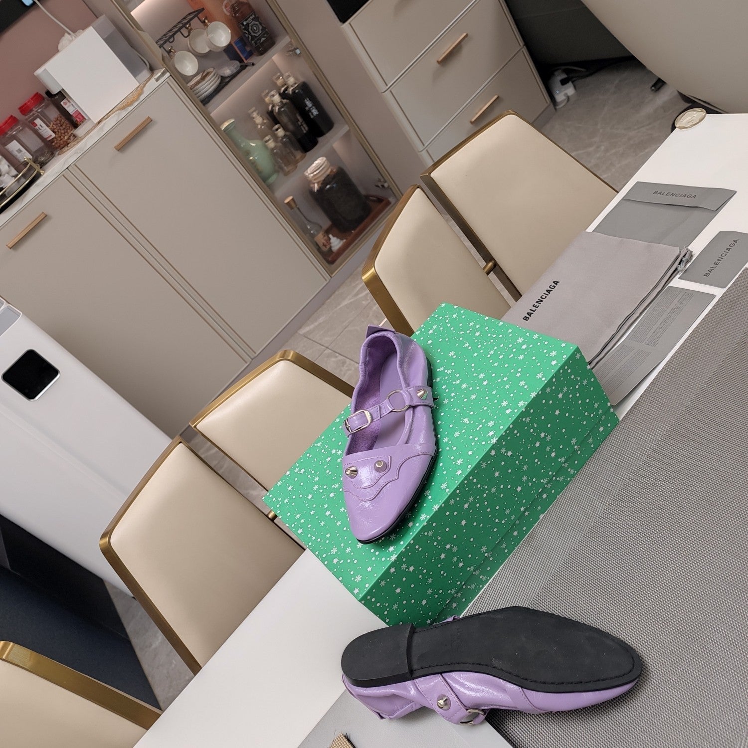 STUDDED MARY JANE FLATS IN LAVENDER SHINY LAMBSKIN