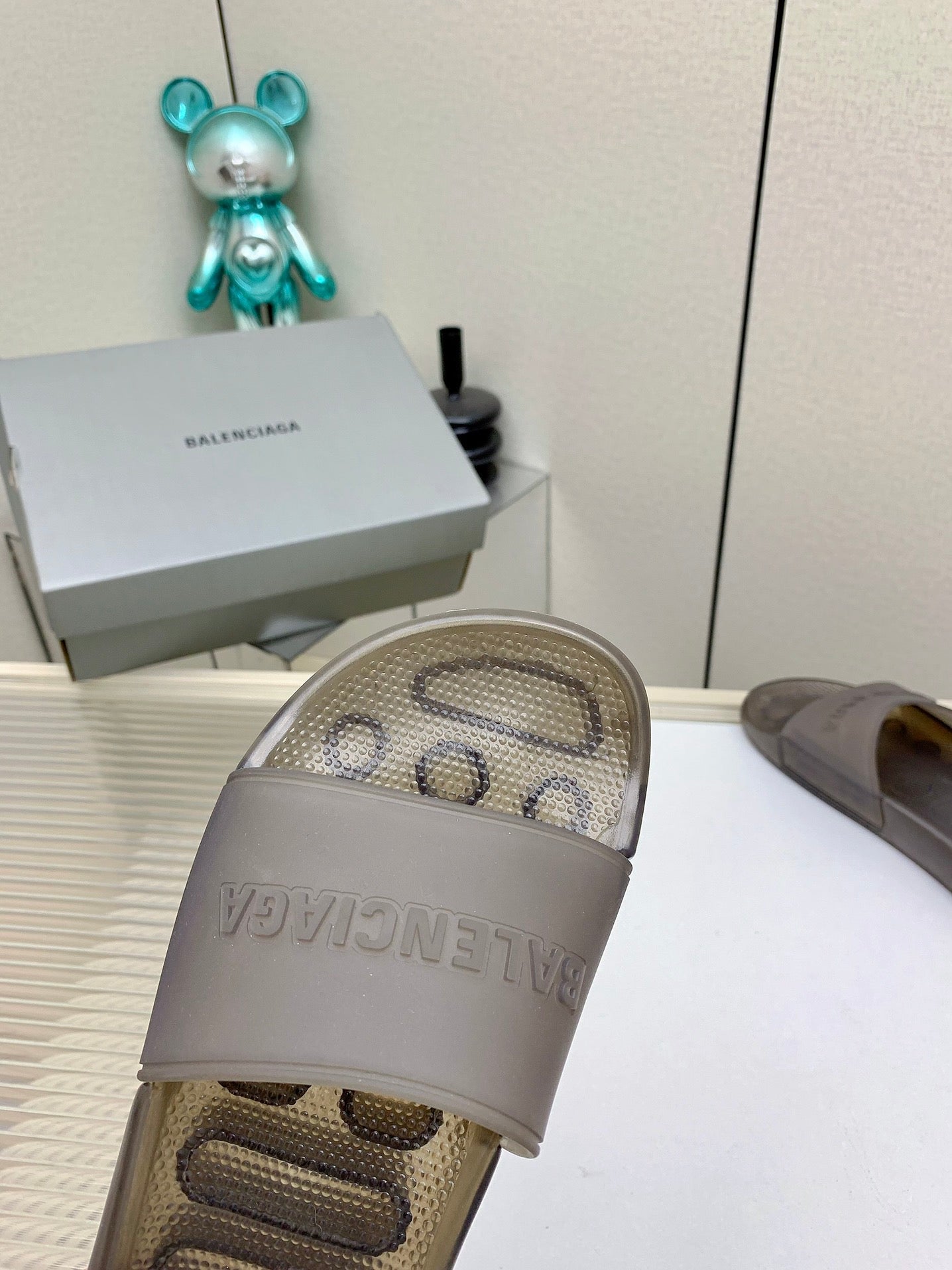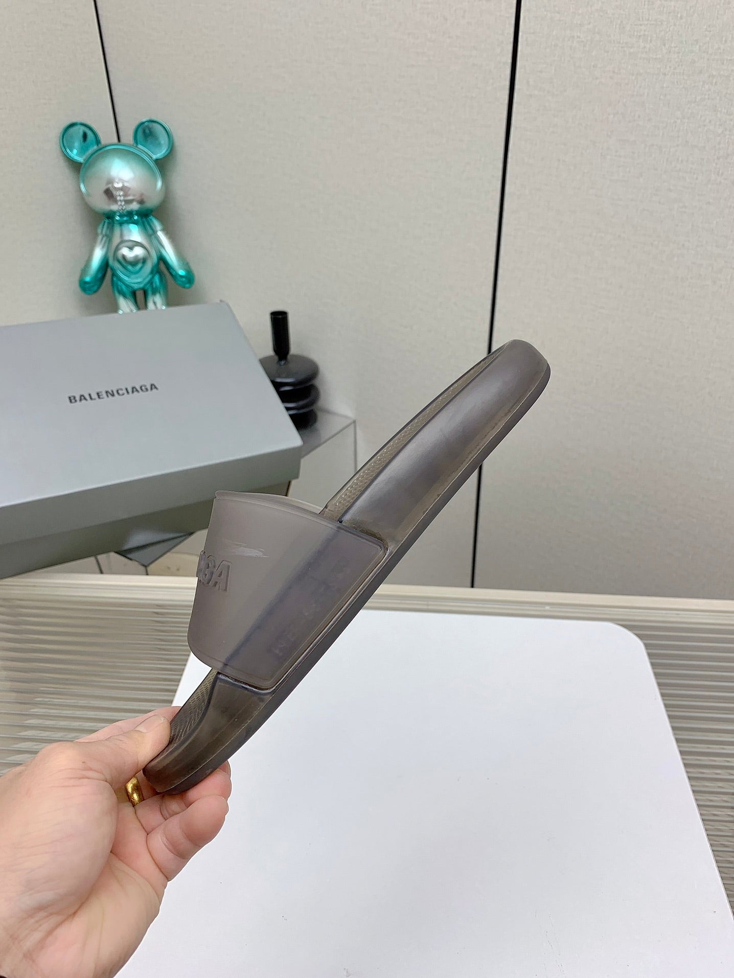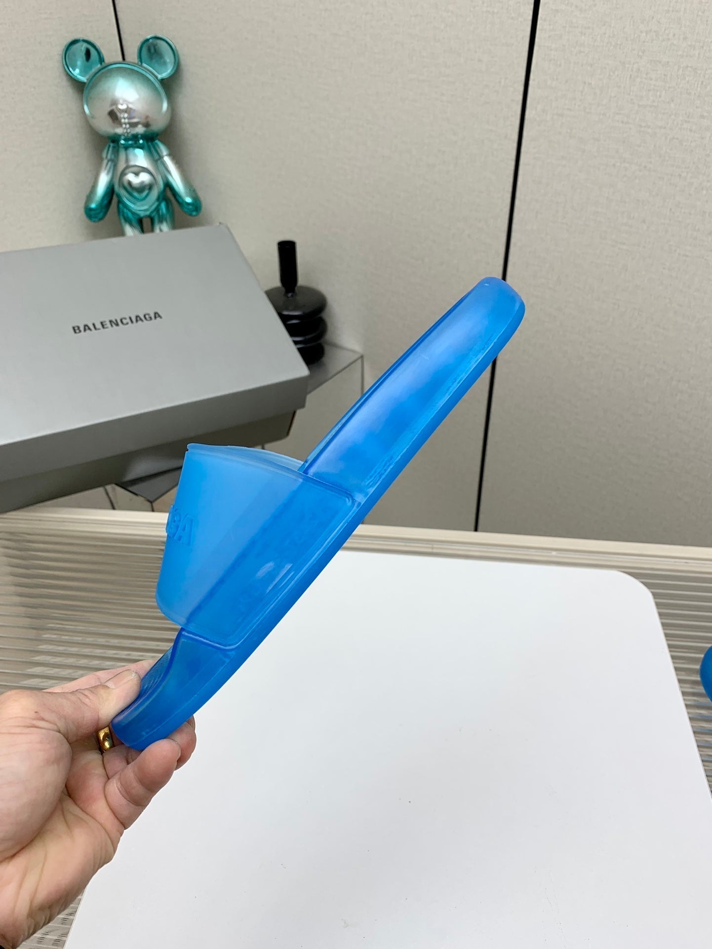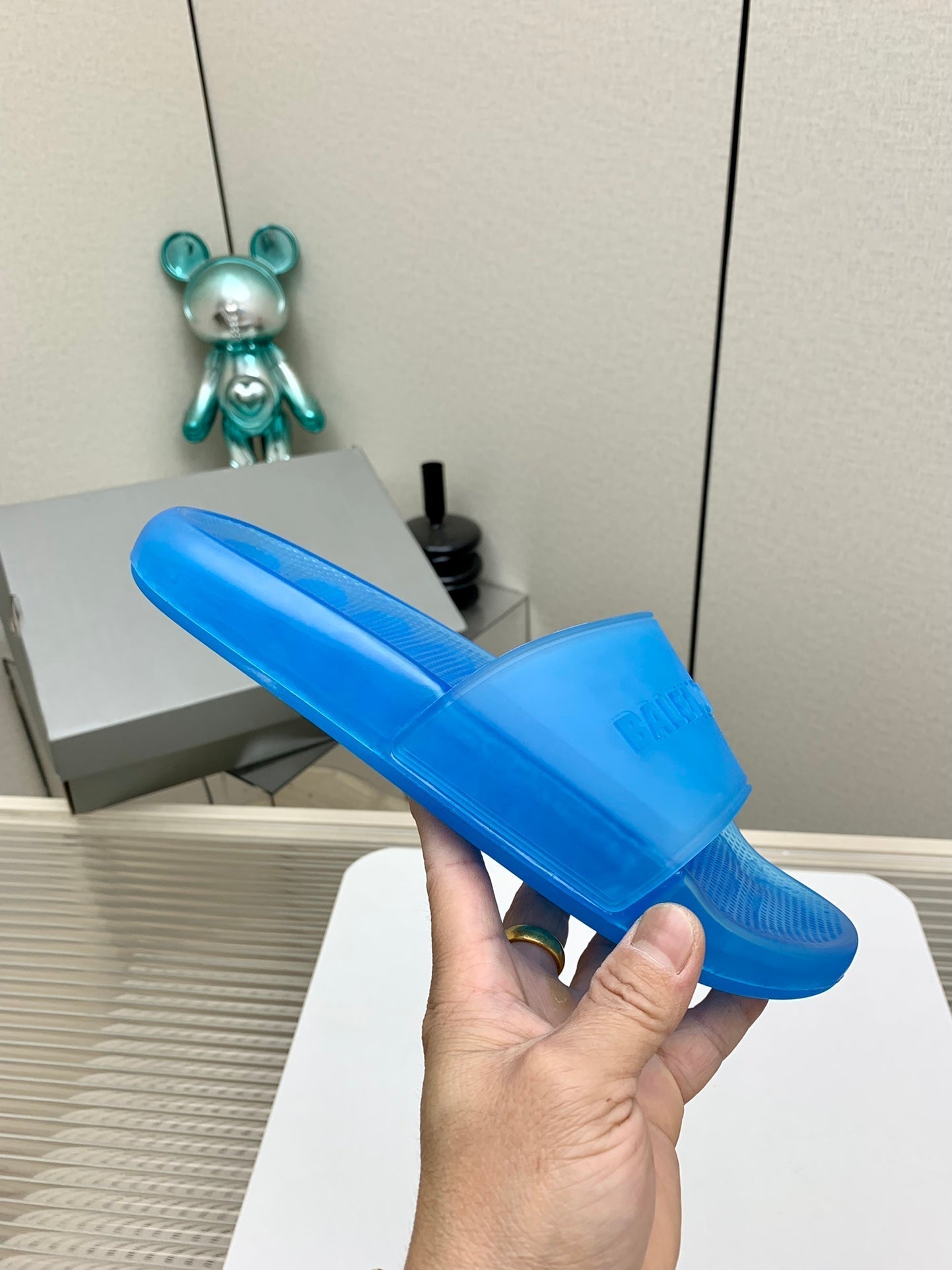 POOL SLIDE SANDAL IN JELLY BLUE RUBBER