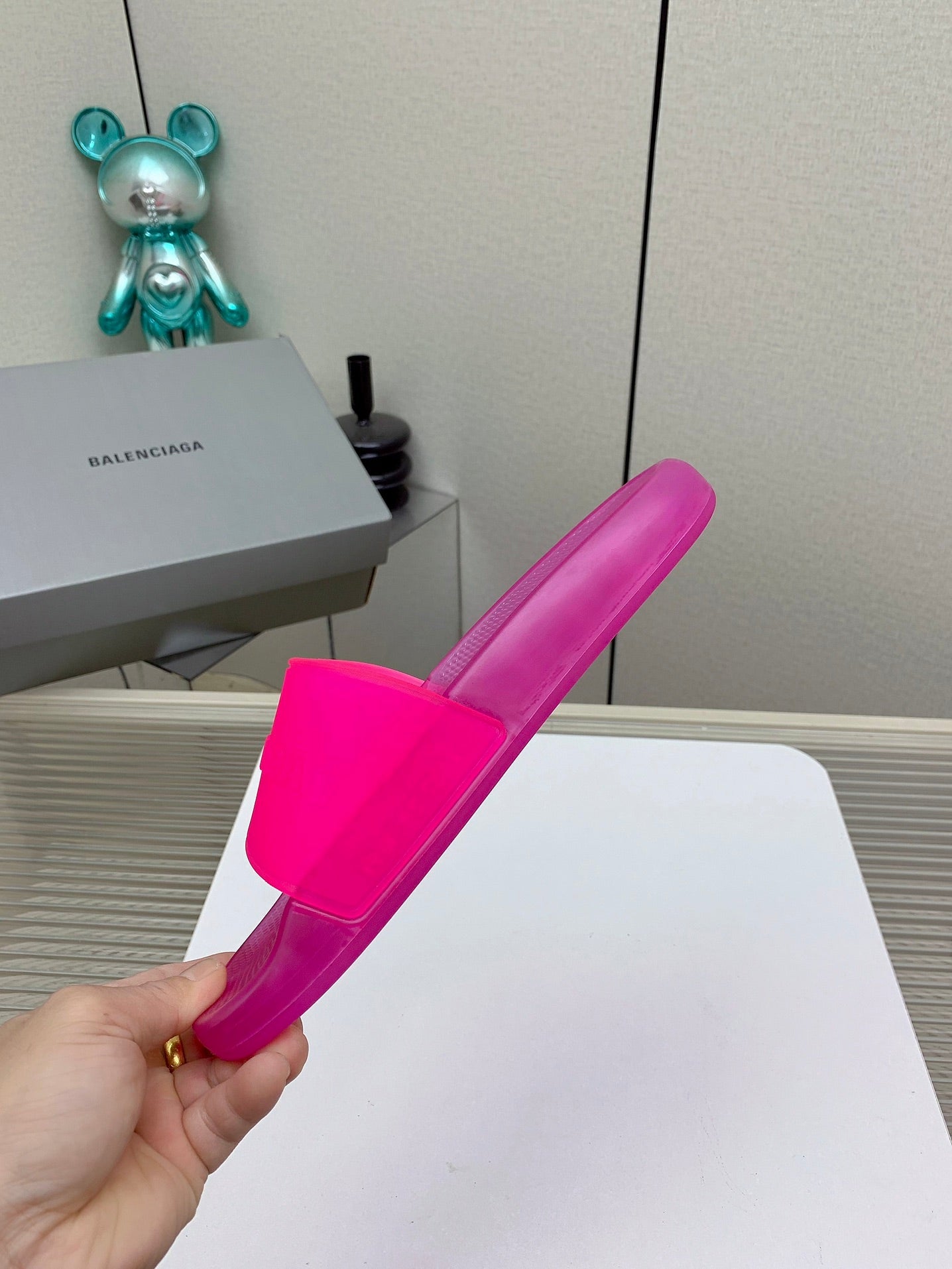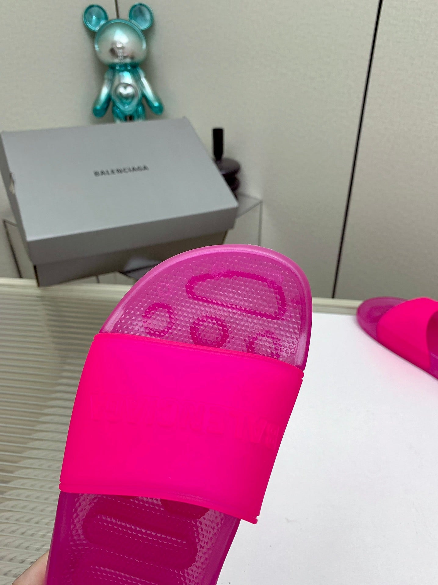POOL SLIDE SANDAL IN JELLY PINK RUBBER