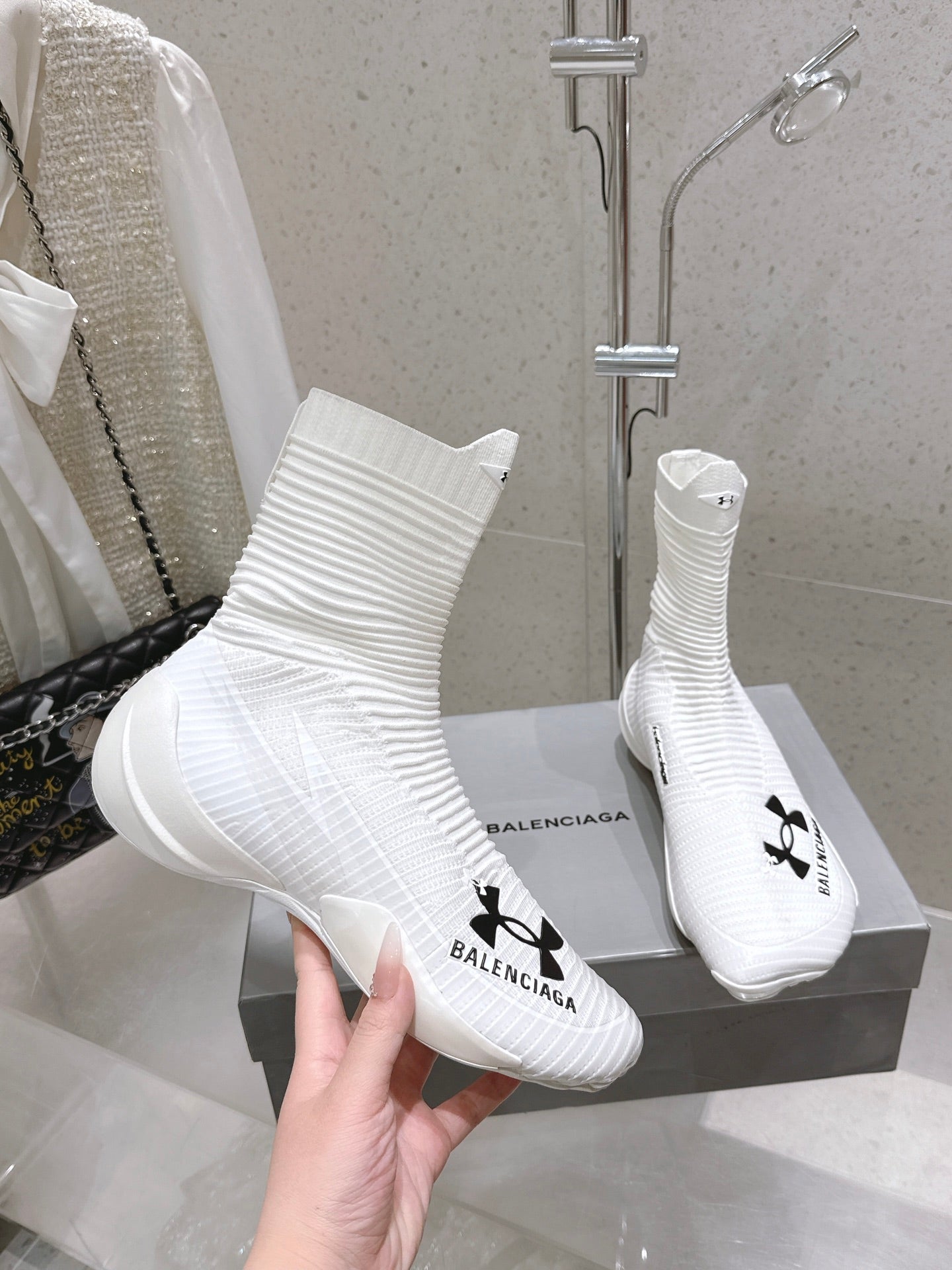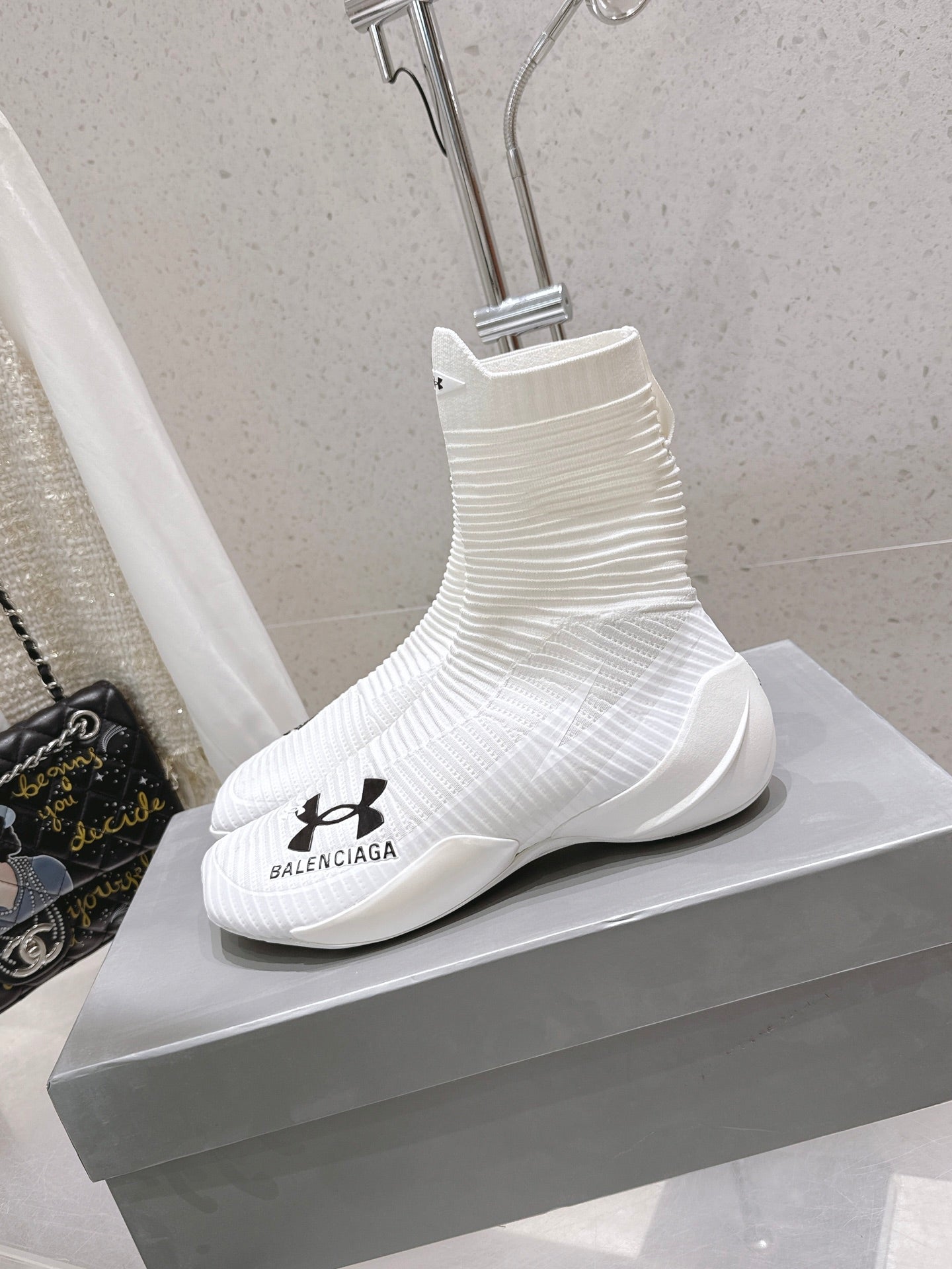 UNDER ARMOUR HYPER SNEAKER IN WHITE MIX BLACK KNITTED FABRIC