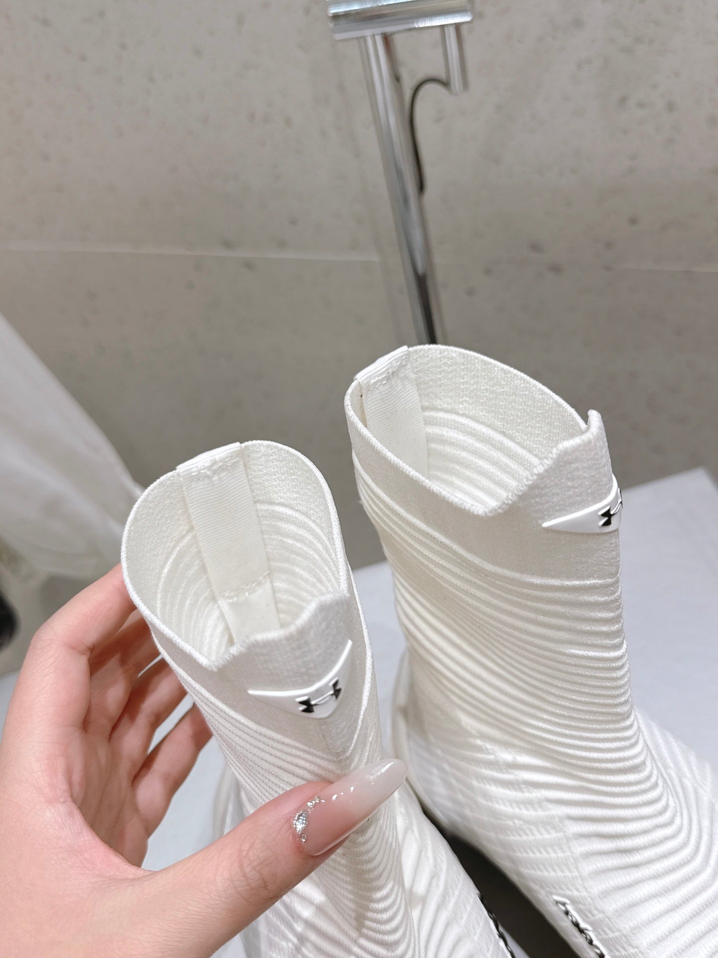 ZIPPER POINTED-TOE HIGH PUMPS IN BEIGE SUEDE ATTACHED SILVER CRYSTAL