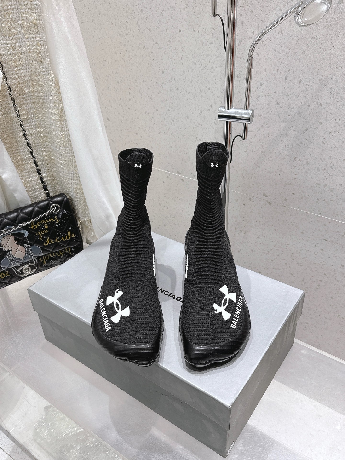 UNDER ARMOUR HYPER SNEAKER IN BLACK MIX WHITE KNITTED FABRIC