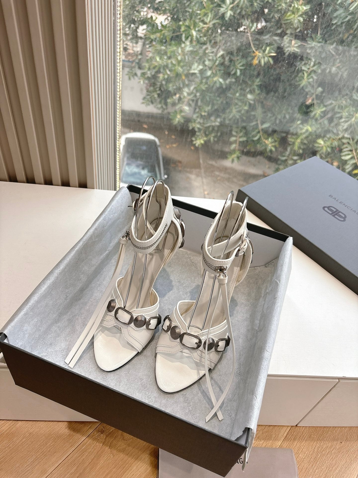 CAGOLE HIGH-HEEL SANDALS IN WHITE LAMBSKIN
