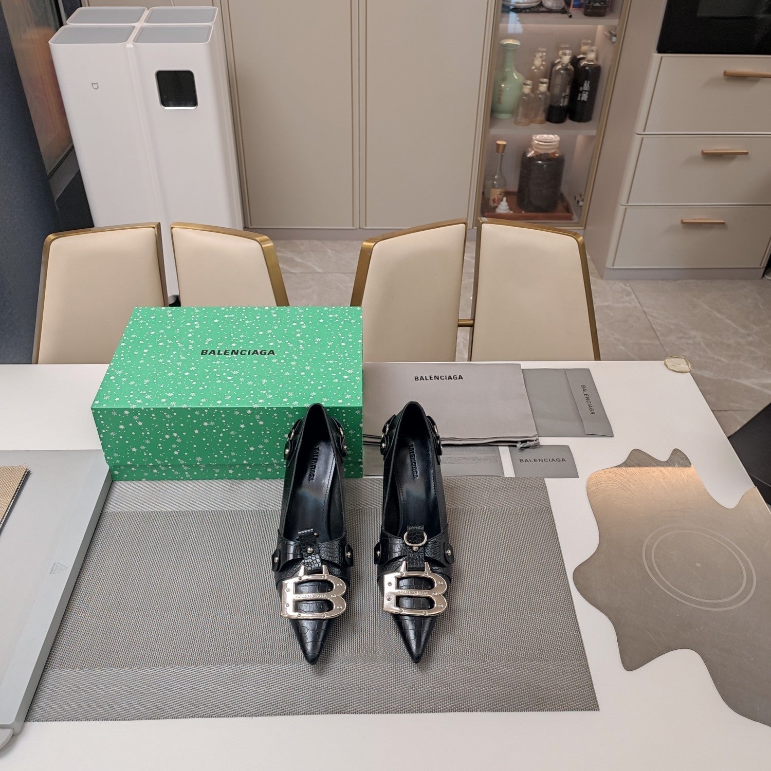 HIGH PUMPS WITH B SILVER BUCKLE IN BLACK CROCODILE PATTERN CALFSKIN