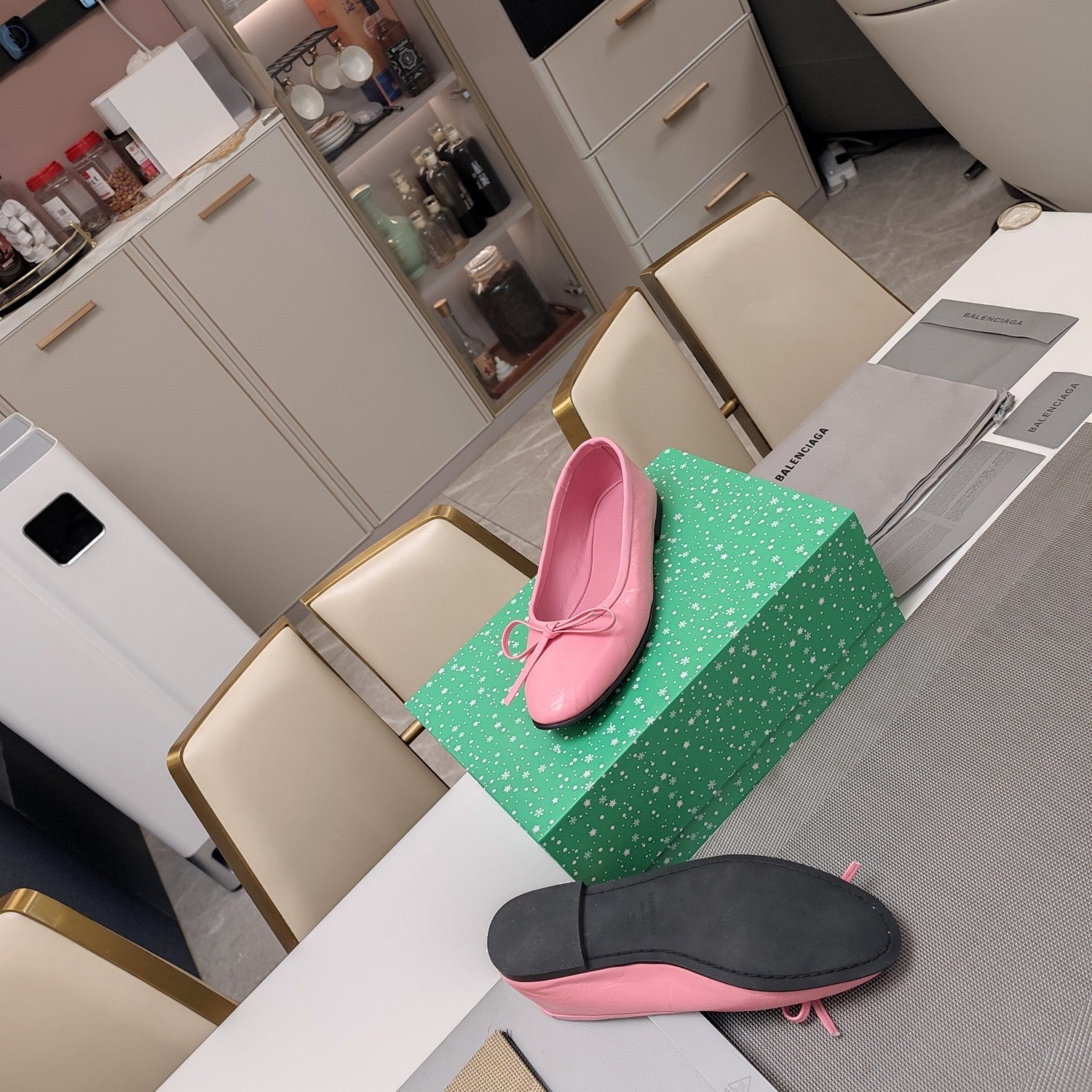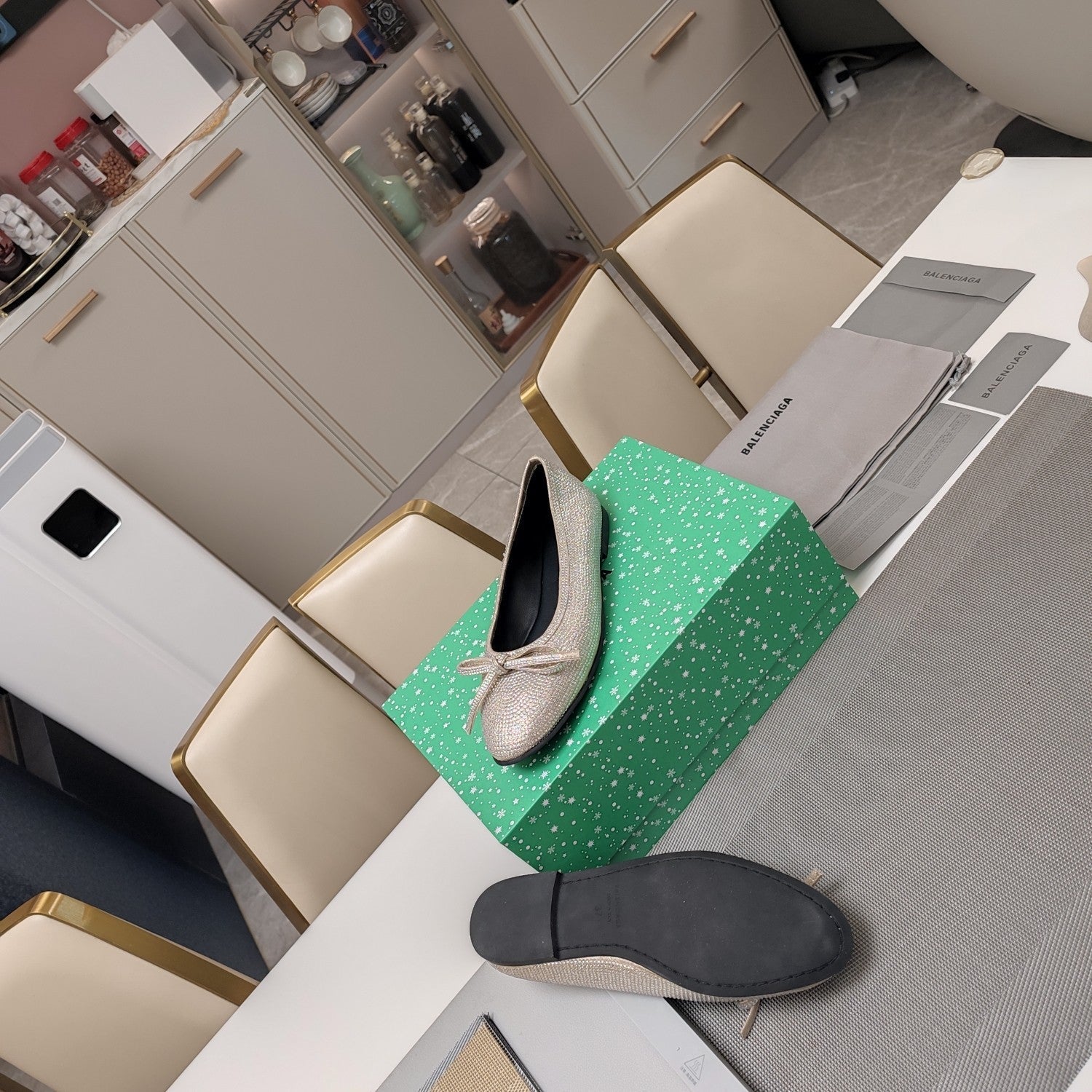 RHINESTONE BALLET FLATS WITH BOW IN FUN GREEN SHEEPSKIN