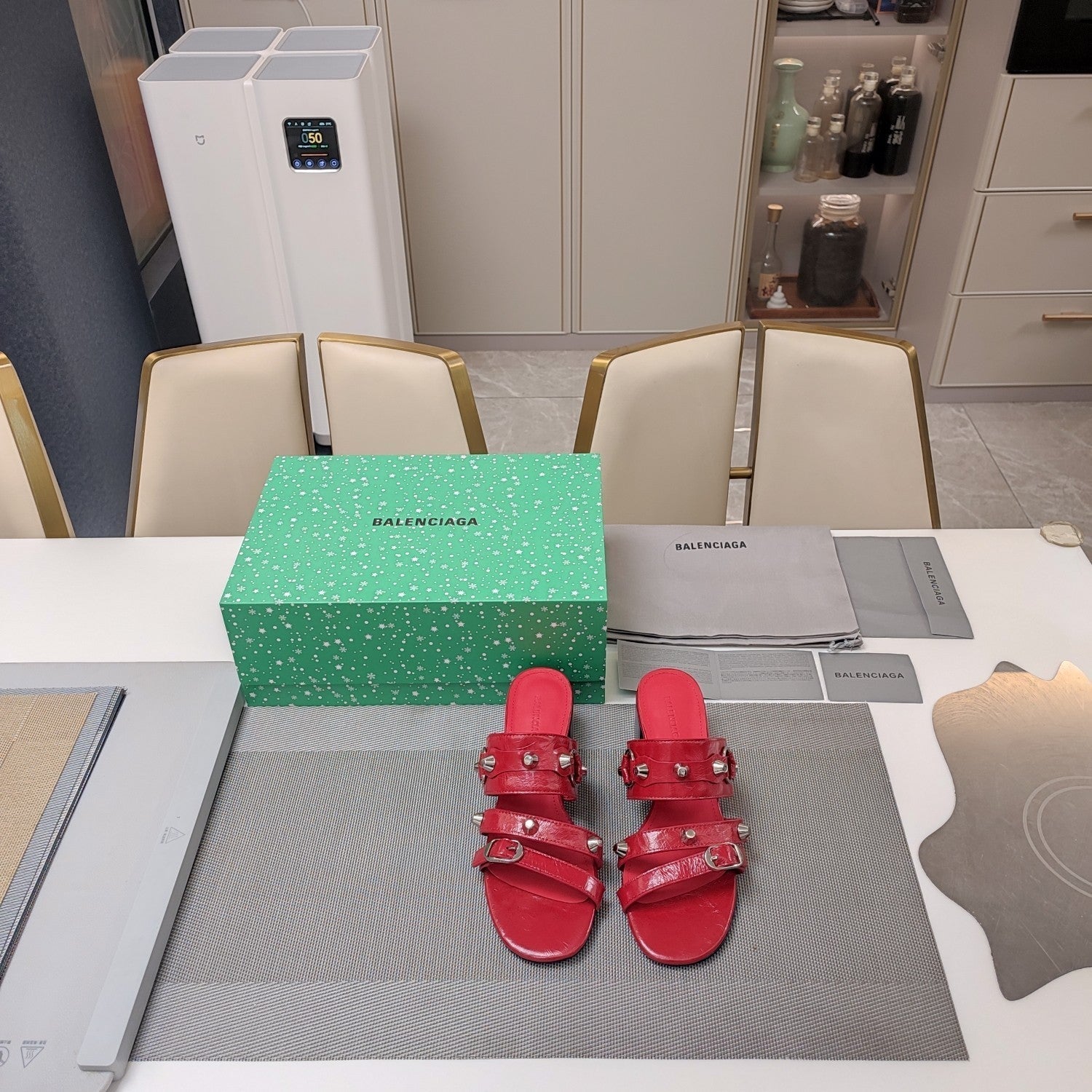 STRAPPY FLAT SANDALS IN RED STUDDED WAX-OIL SHEEPSKIN