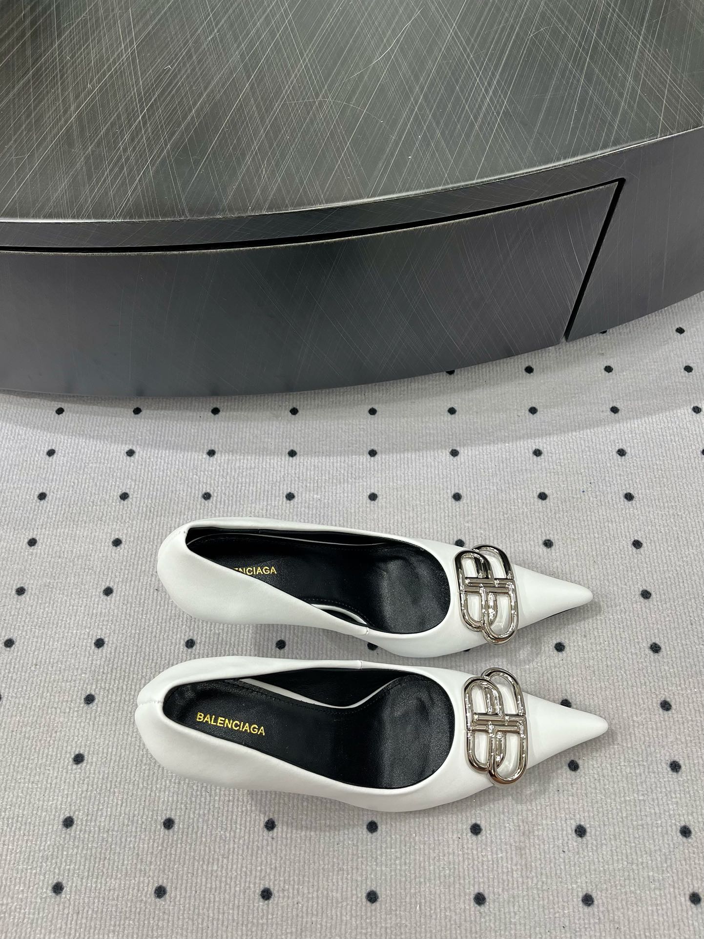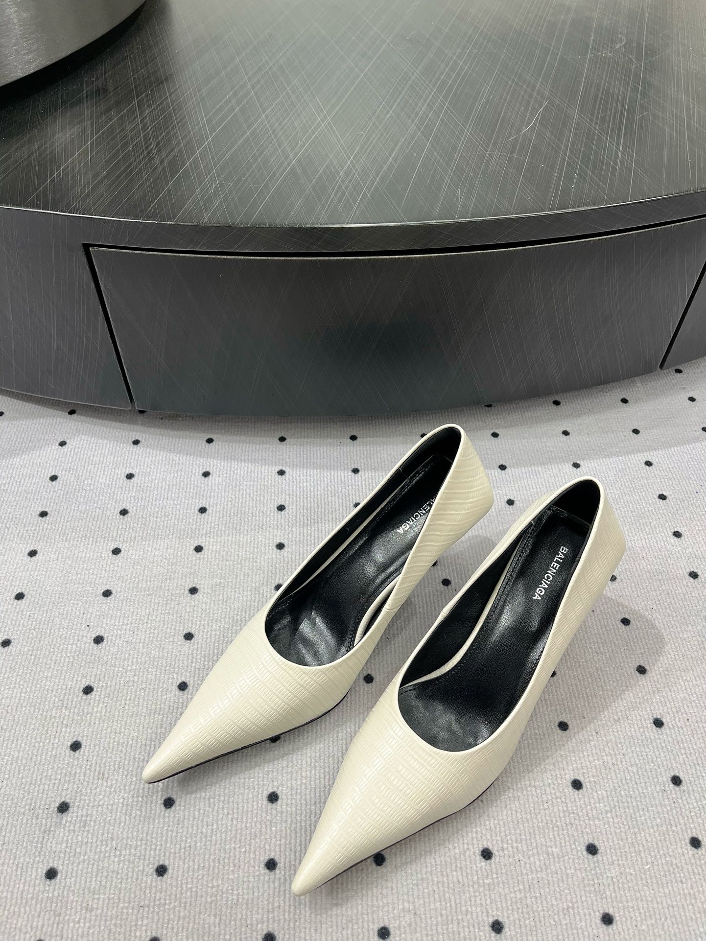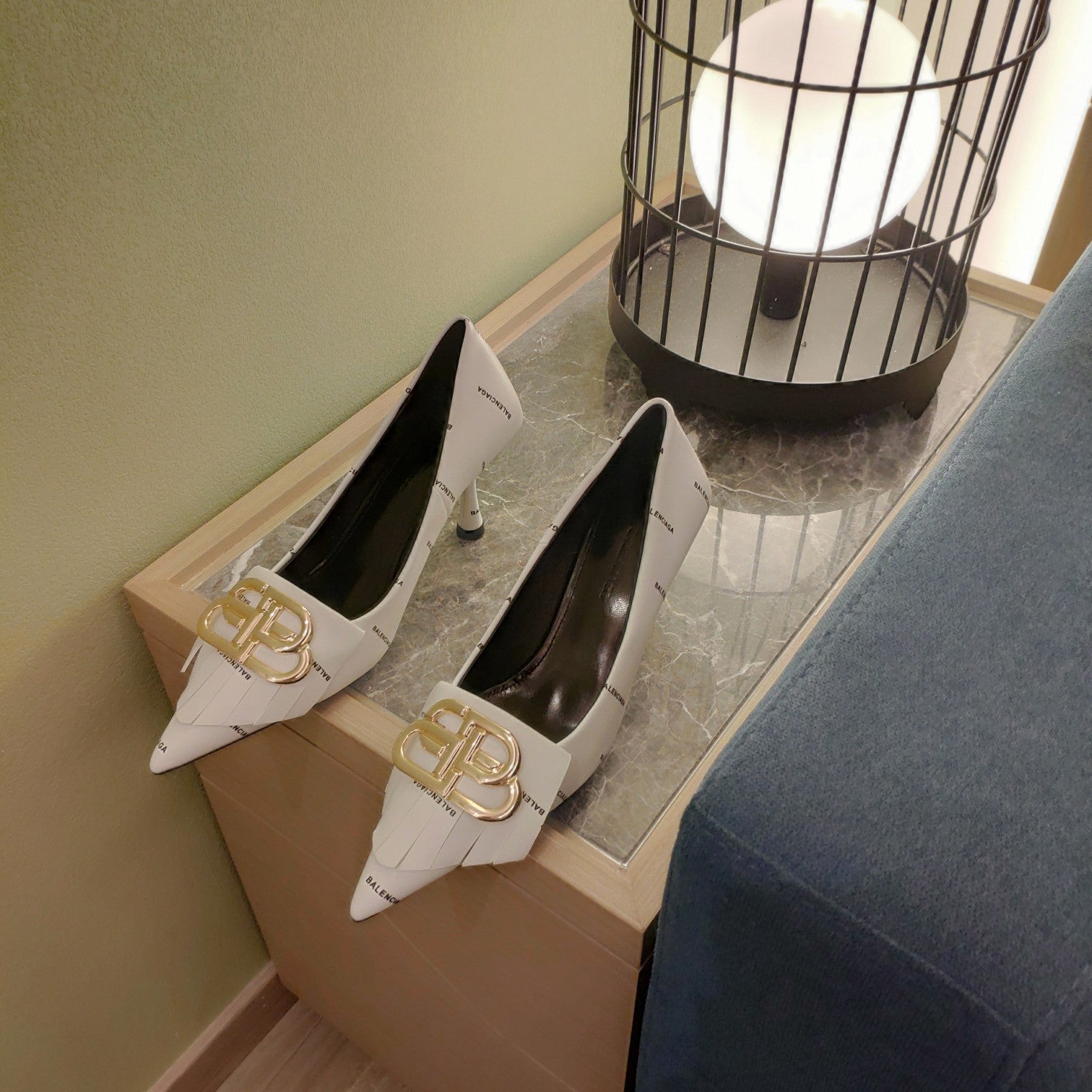 POINTED BB GOLD BUCKLE HIGH PUMPS IN WHITE CROCODILE PATTERN CALFSKIN