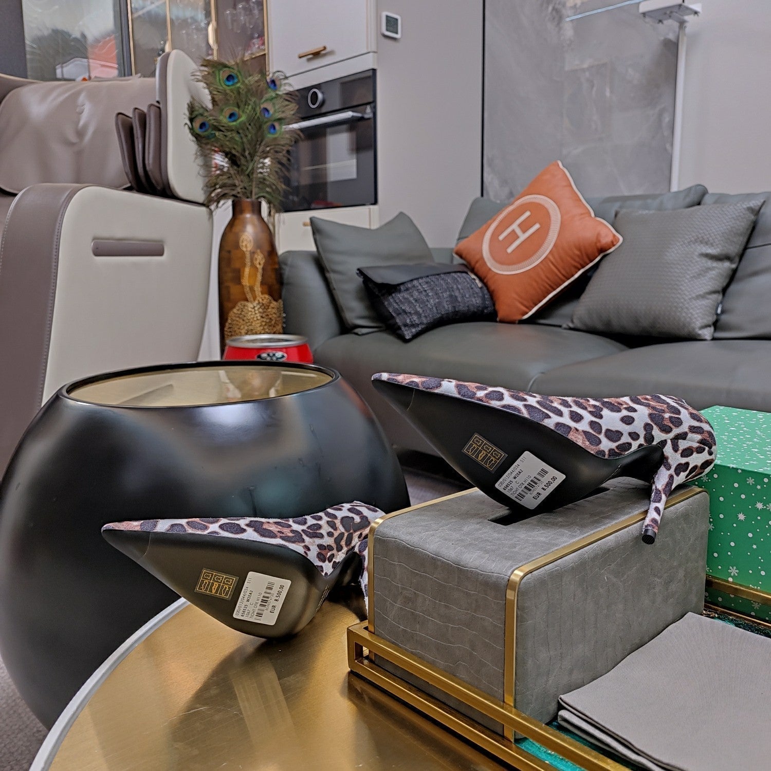 HIGH PUMPS IN BEIGE LEOPARD PRINT SUEDE