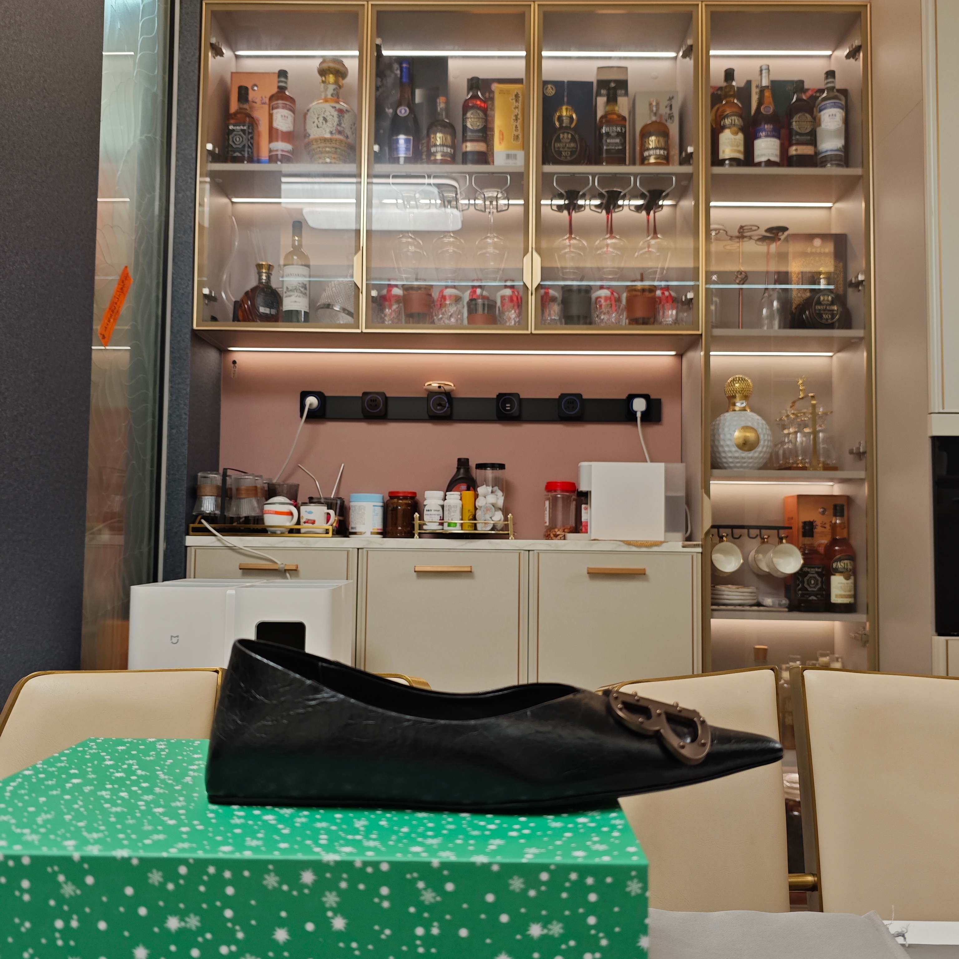 POINTED BB GOLD BUCKLE BALLET FLAT IN GOLD METALLIC SHINY CALFSKIN