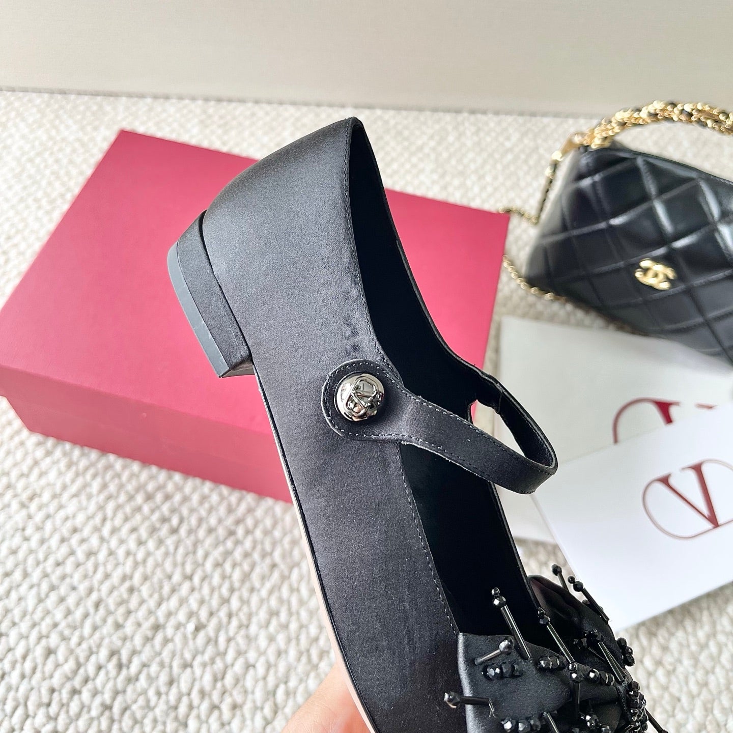 VT 25 Bow Marry Jane Flat Black Silk 345039