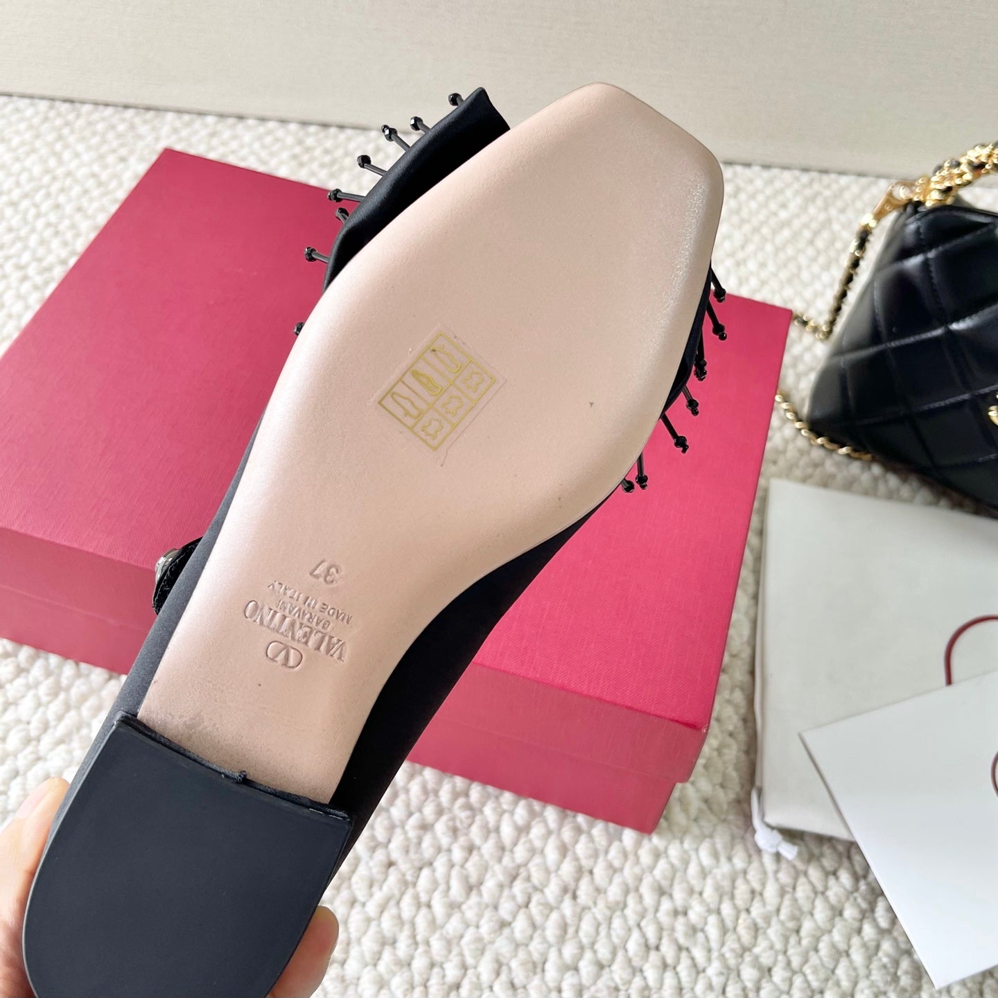 VT 25 Bow Diamond Marry Jane Flat Black Silk