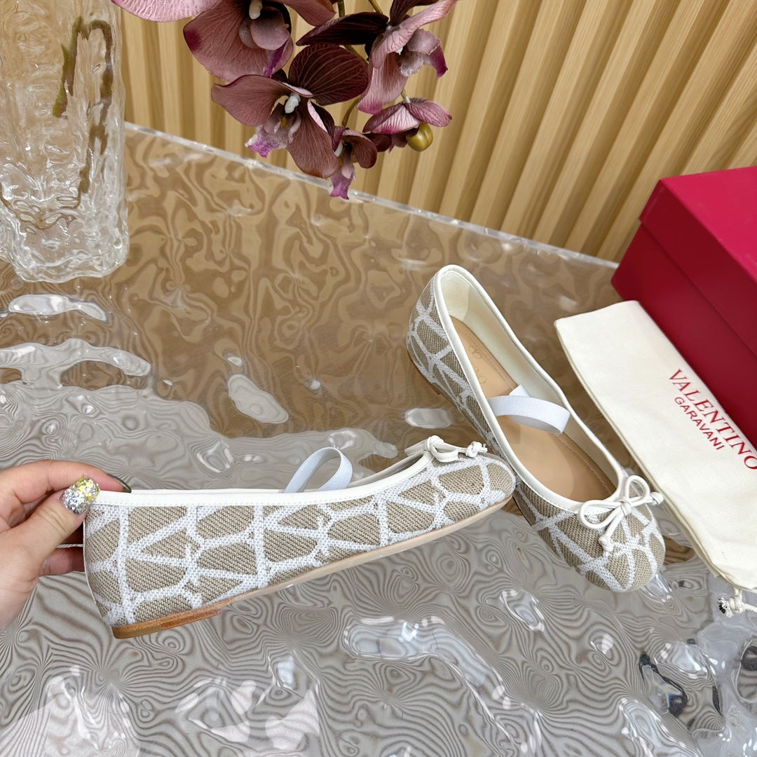 VT 2025 Quilted Leather Bow Ballerina Flats White Sheepskin 286491