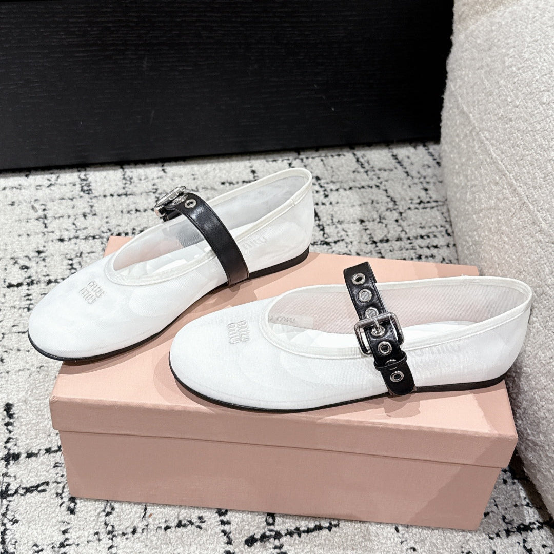 Miu Miu 25 Hollow Ballet Flats White Mesh Frabic