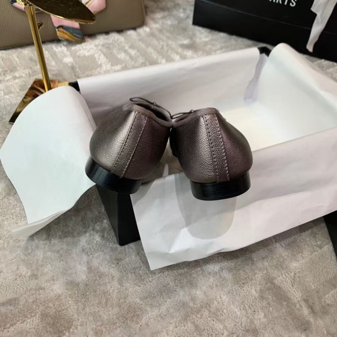 Ballet Flat Grey Chocolate Grained Calfskin