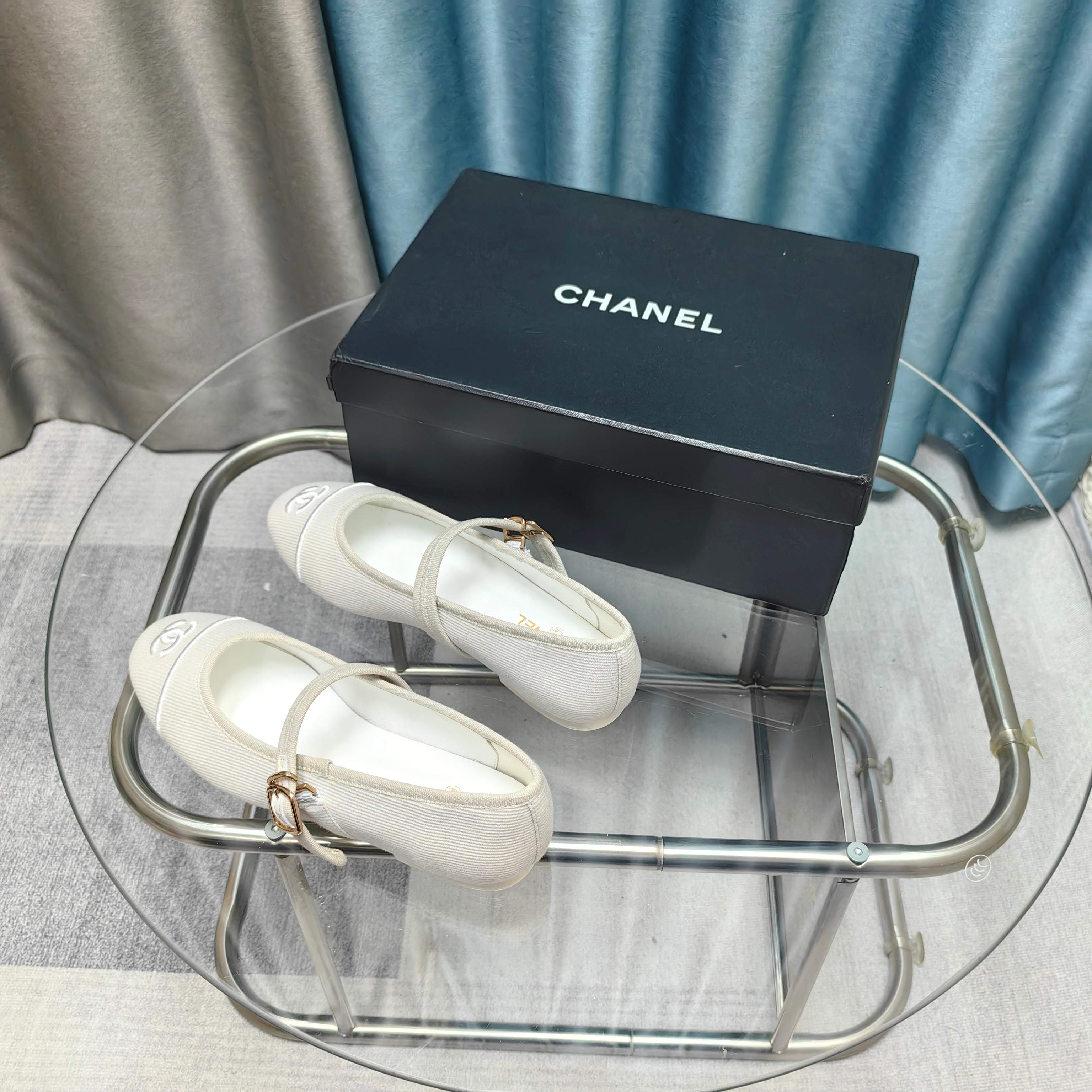 CC 25 Ballet Flat White Beige Raffia