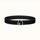 BOUCLE BELT BUCKLE & REVERSIBLE BLACK AND WHITE LEATHER STRAP 38MM SILVER HARDWARE