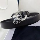 CC WOMEN'S BELT 30MM LEATHER BLACK BUCKLE SILVER BLACK DIAMOND